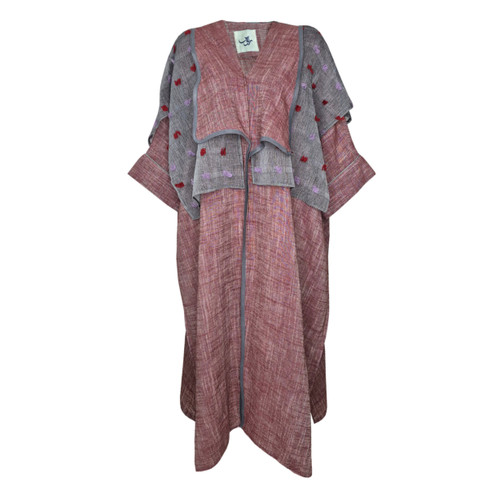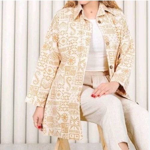 مانتو عبایی زنانه لینن نچرال طرح دار