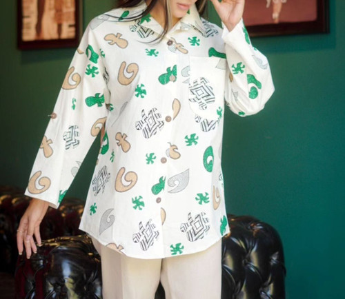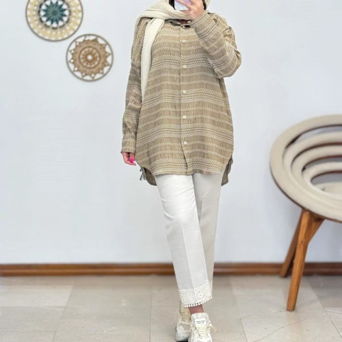 مانتو زنانه لینن نچرال طرح کاکتوس