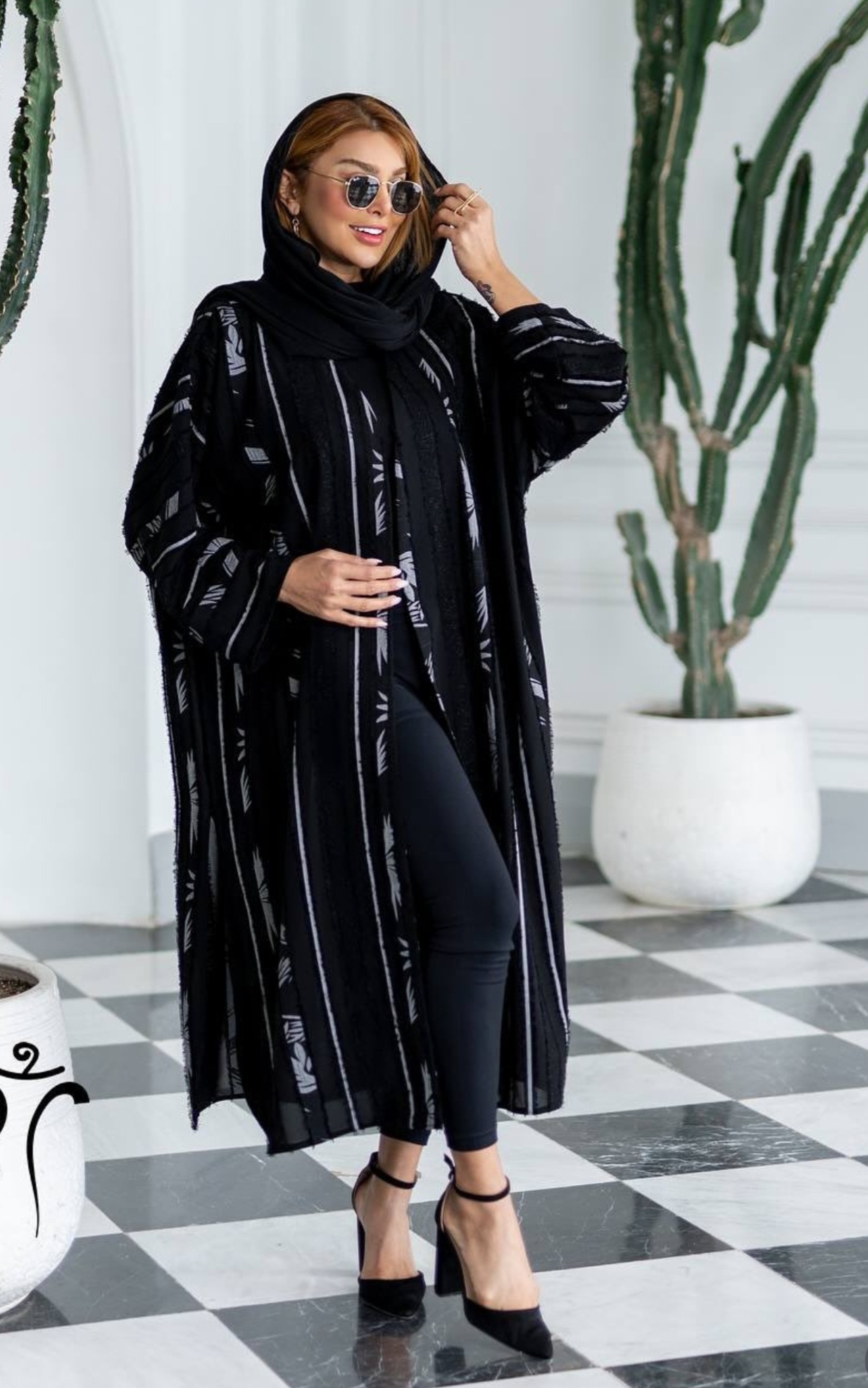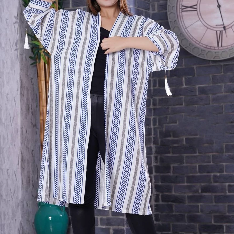 مانتو عبایی زنانه لینن نچرال طرح دار