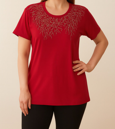 تیشرت زنانه نگین دار ویسکوز قواره دار