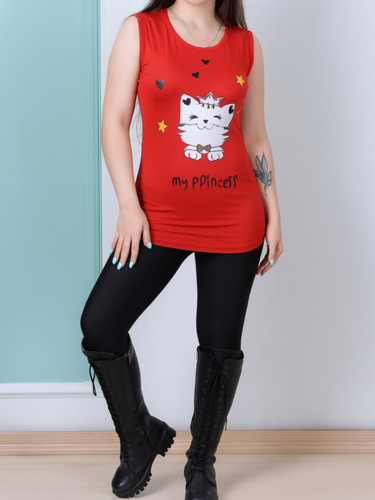 تاپ زنانه ویسکوز طرح گربه