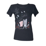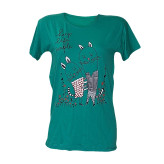 تیشرت زنانه آستين کوتاه نگین دار طرح گربه جنس ویکسوز نگین دار کیفیت عالی فری سایز 36 تا 48 در رنگ های مختلف و متنوع دور سینه بدون کشسانی 98 سانت. طول 68 سانت کشسانی دارد