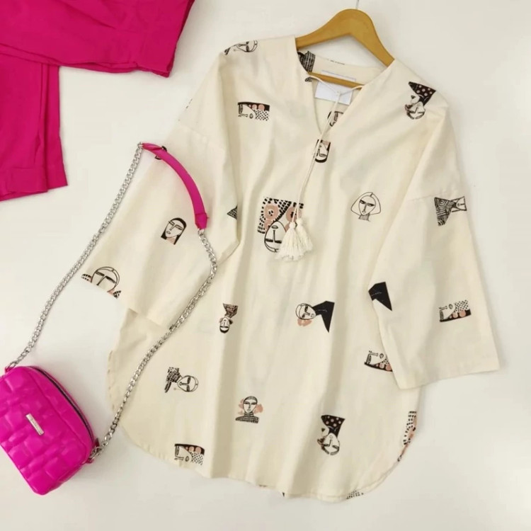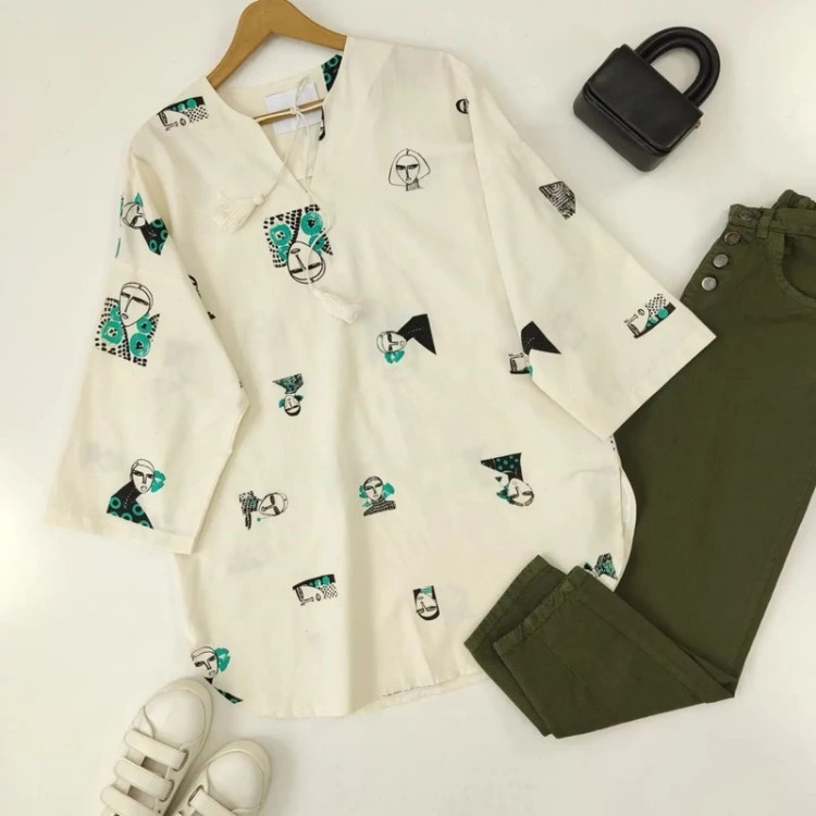تونیک زنانه لنین نچرال طرح دختر جنس لنین طرح دار کیفیت عالی تن پوش شیک و زیبا طرح خاص و جذاب فری سایز رنگبندی دارد اندازها. دور سینه 120 سانت. قد جلو 74 سانت. قد پشت 79