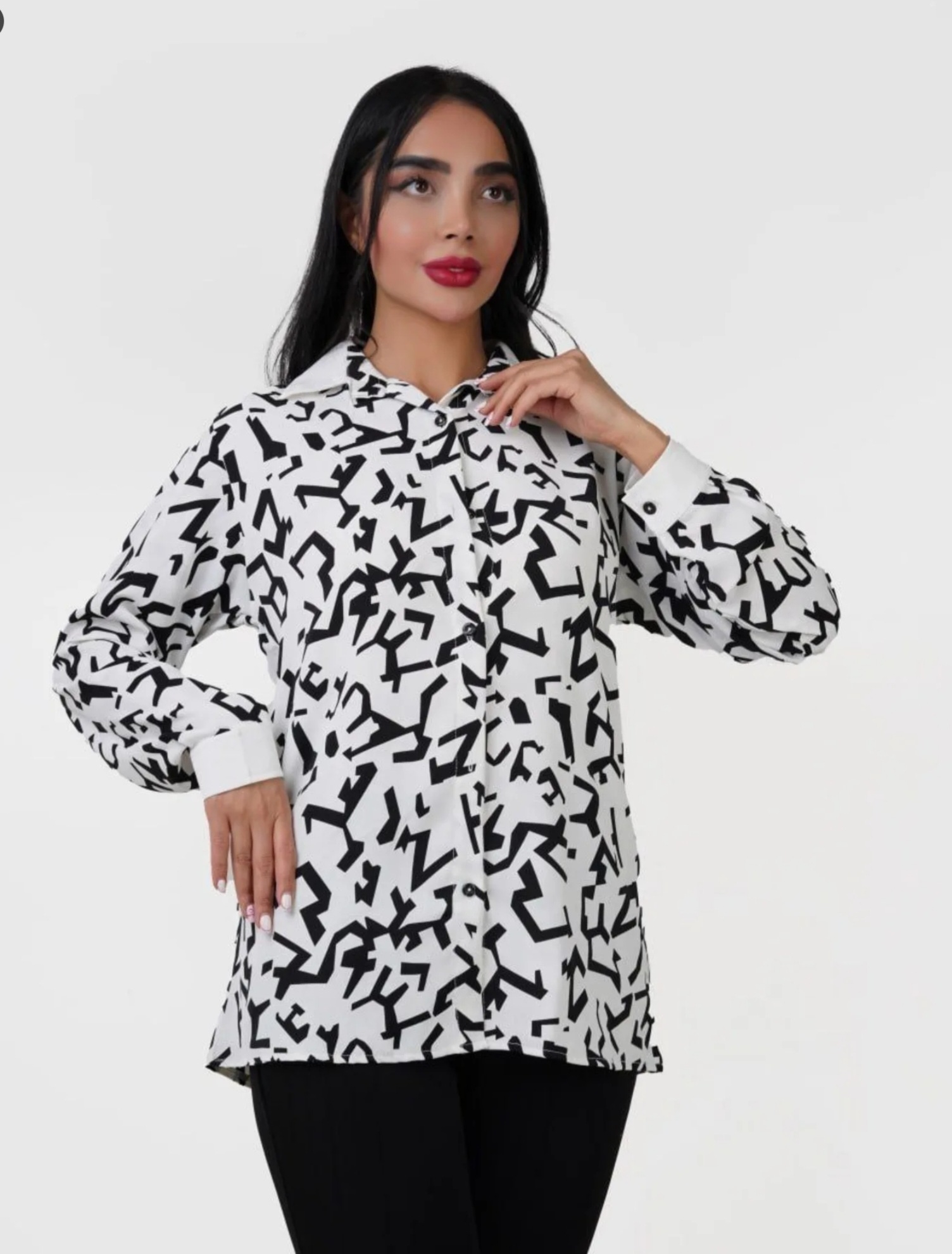 شومیز زنانه طرح دار الیزه جنس پارچه حریر کرپ الیزه تن پوش شیک و زیبا فوق العاده خنک و راحت سایز بندی دارد رنگبندی. مشکی. سفید. کرم