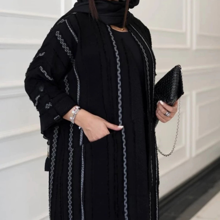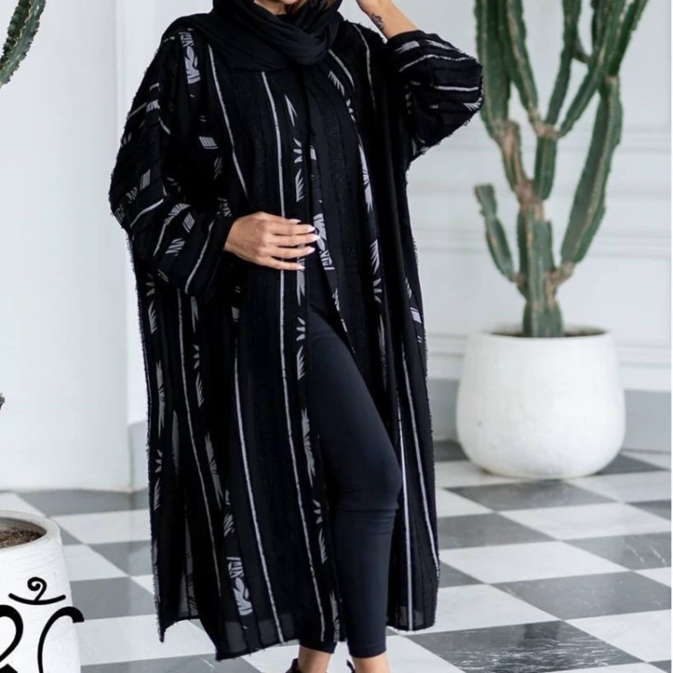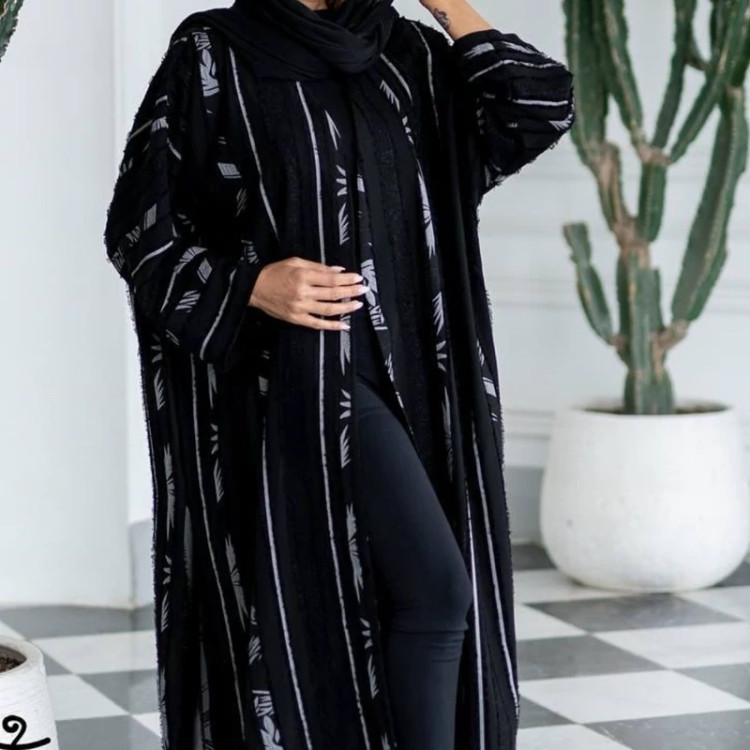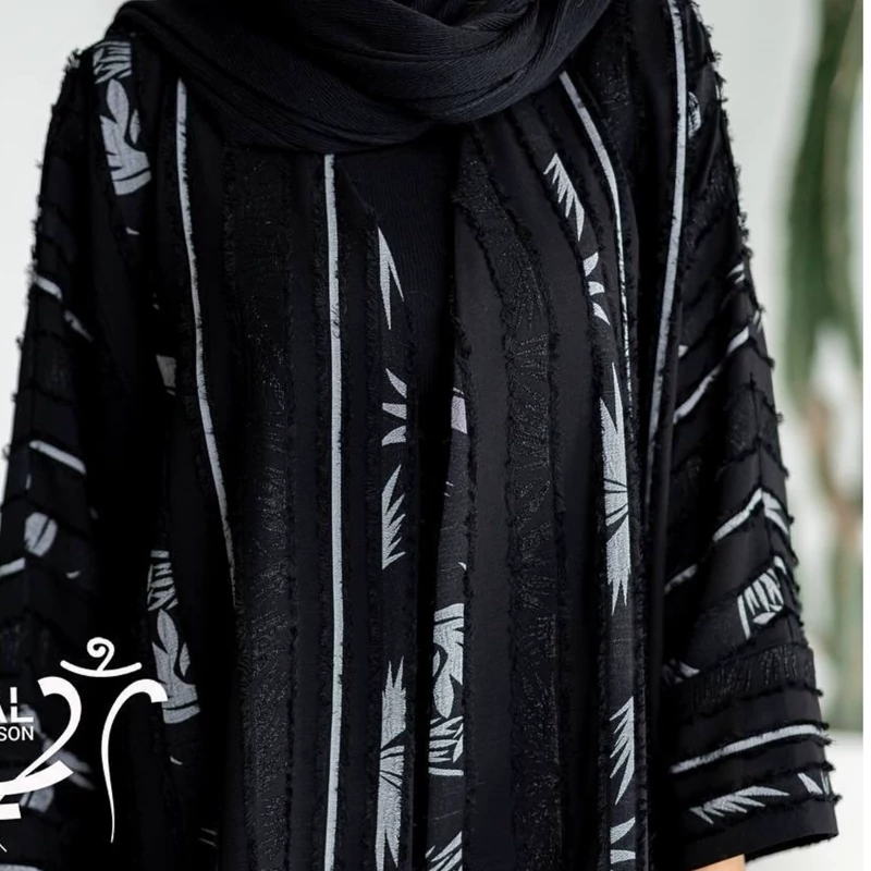 مانتو زنانه مجلسی عبایی جنس کرپ کیفیت عالی تن پوش فوق العاده شیک و زیبا خنک و راحت فری سایز مناسب 38 تا 52