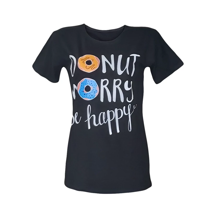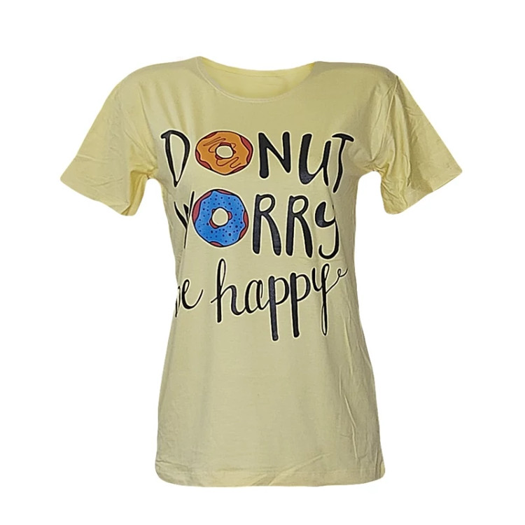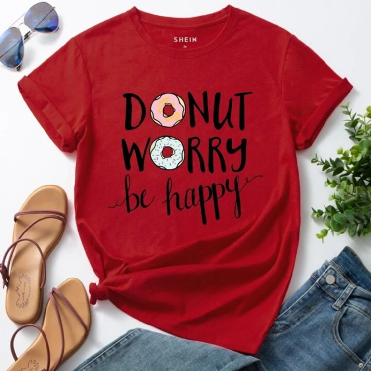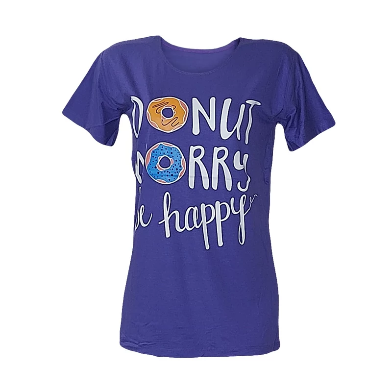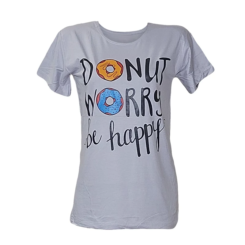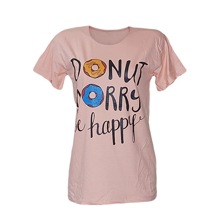 تیشرت زنانه آستين کوتاه نگین دار طرح دونات جنس ویکسوز نگین دار کیفیت عالی فری سایز 36 تا 48 در رنگ های مختلف و متنوع دور سینه بدون کشسانی 98 سانت. طول 68 سانت کشسانی دارد