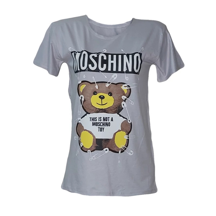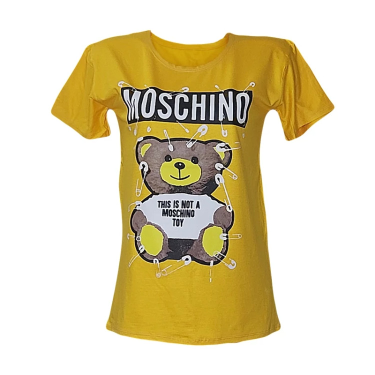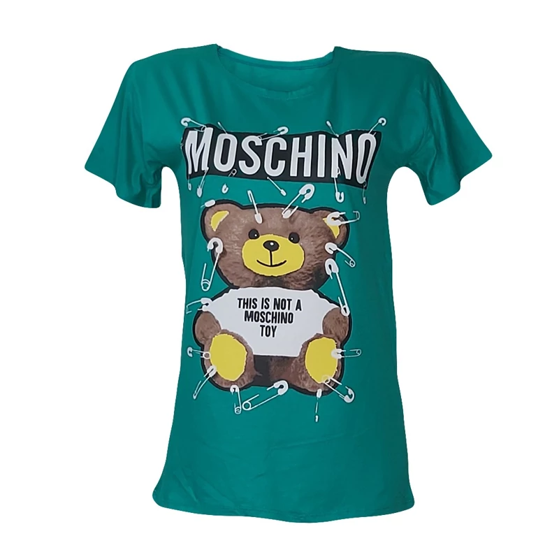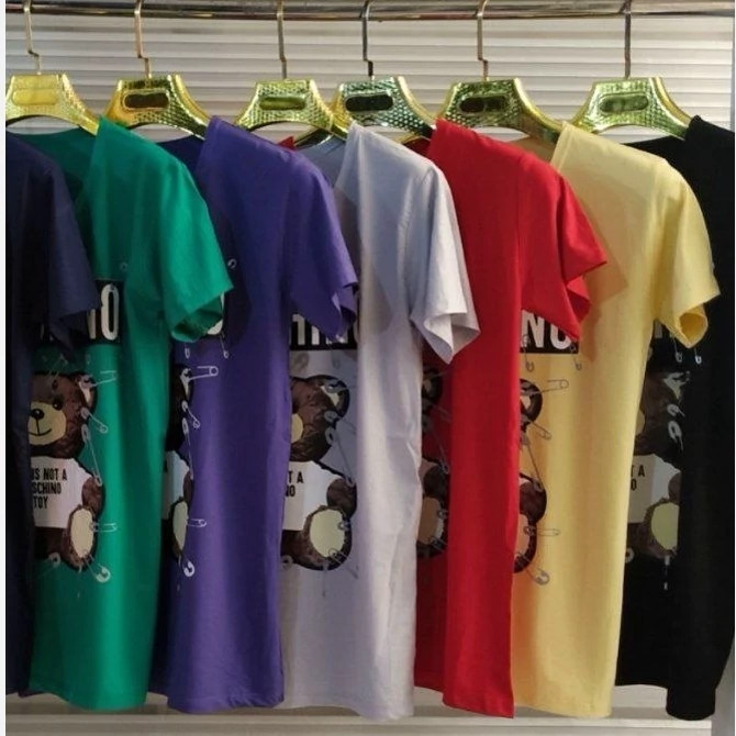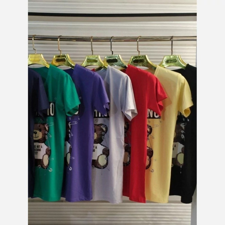 تیشرت زنانه آستين کوتاه نگین دار طرح خرس جنس ویکسوز نگین دار کیفیت عالی فری سایز 36 تا 48 در رنگ های مختلف و متنوع دور سینه بدون کشسانی 98 سانت. طول 68 سانت کشسانی دارد
