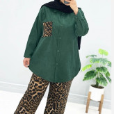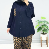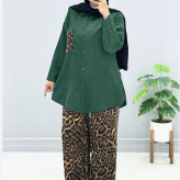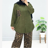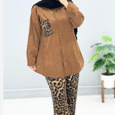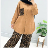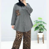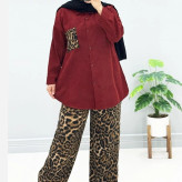 ست مانتو و شلوار زنانه مخمل کبریتی پلنگی