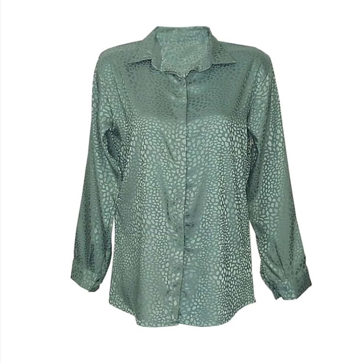 شومیز زنانه مجلسی طرح پلنگی جنس حریر ساتن کیفیت عالی تن پوش شیک و زیبا مناسب استفاده روزمره و مهمانی فری سایز رنگبندی. سبز. مشکی. شیری
