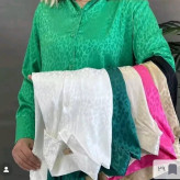 شومیز زنانه مجلسی طرح پلنگی جنس حریر ساتن کیفیت عالی تن پوش شیک و زیبا مناسب استفاده روزمره و مهمانی فری سایز رنگبندی. سبز. مشکی. شیری