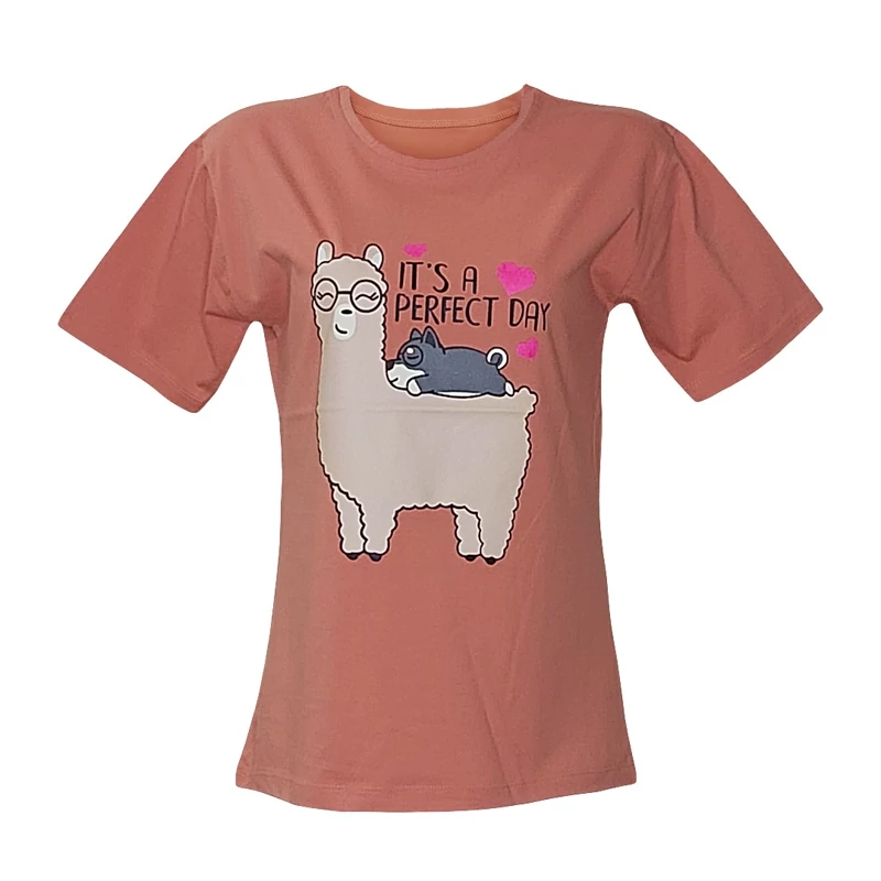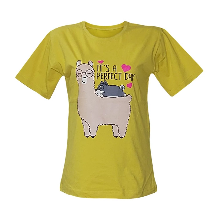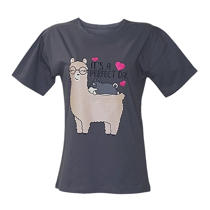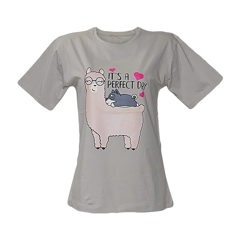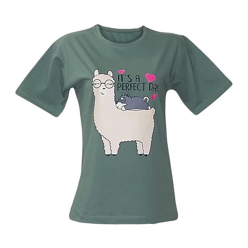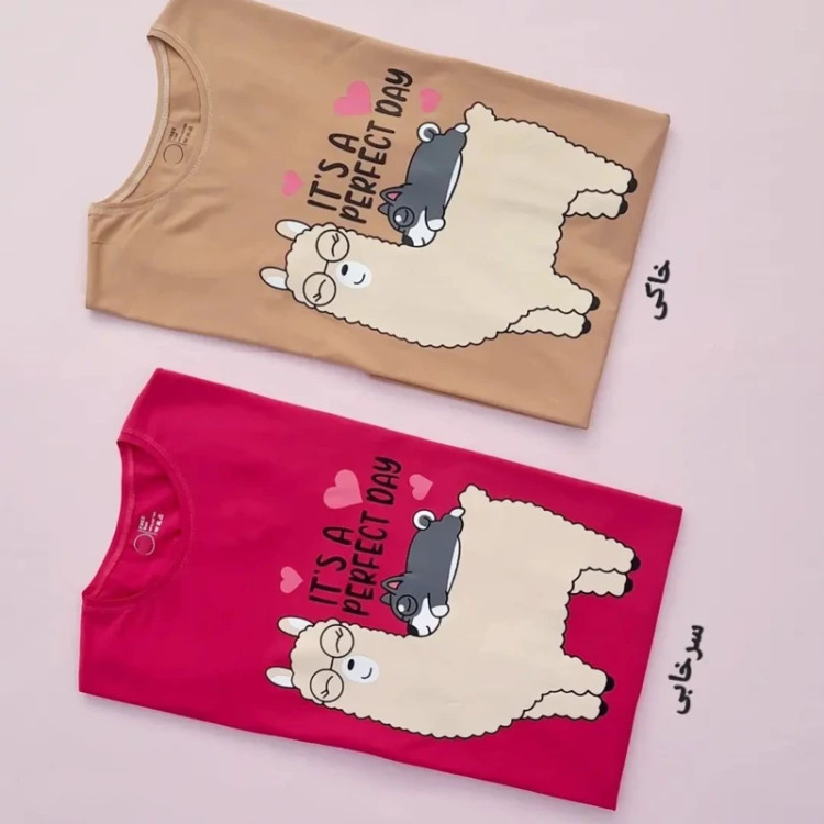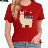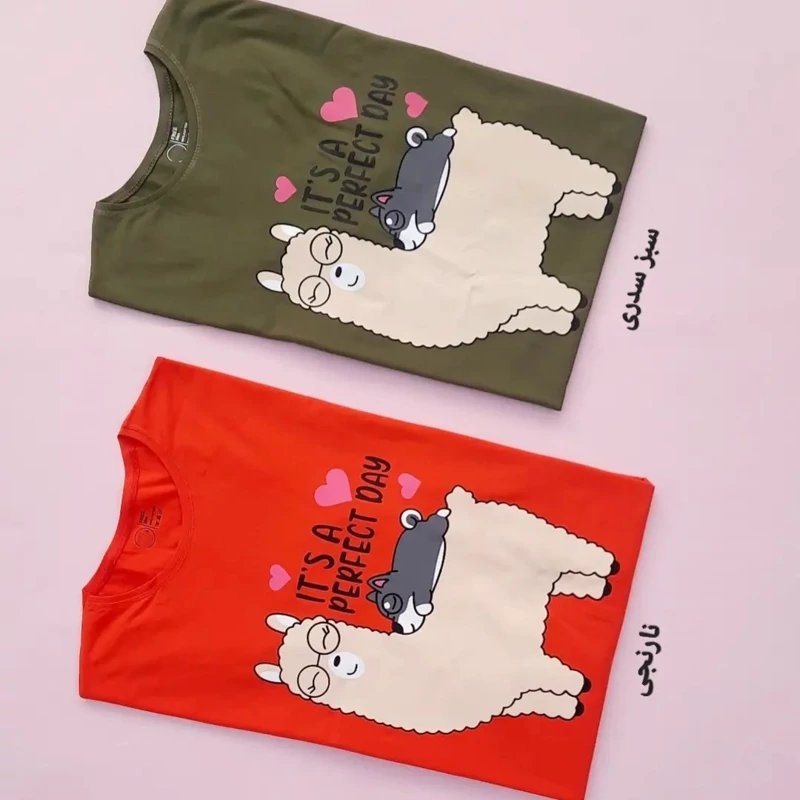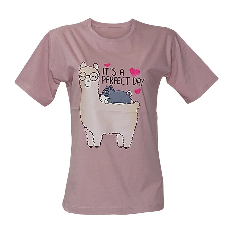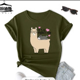 تیشرت زنانه نخ پنبه طرح لاما