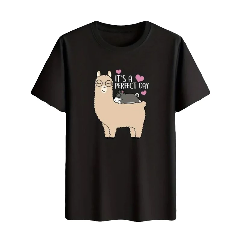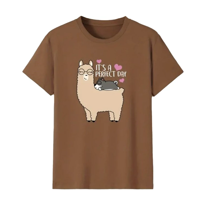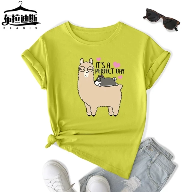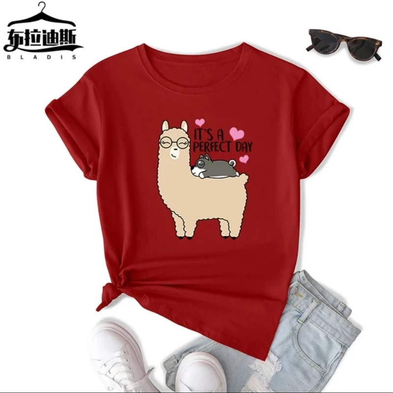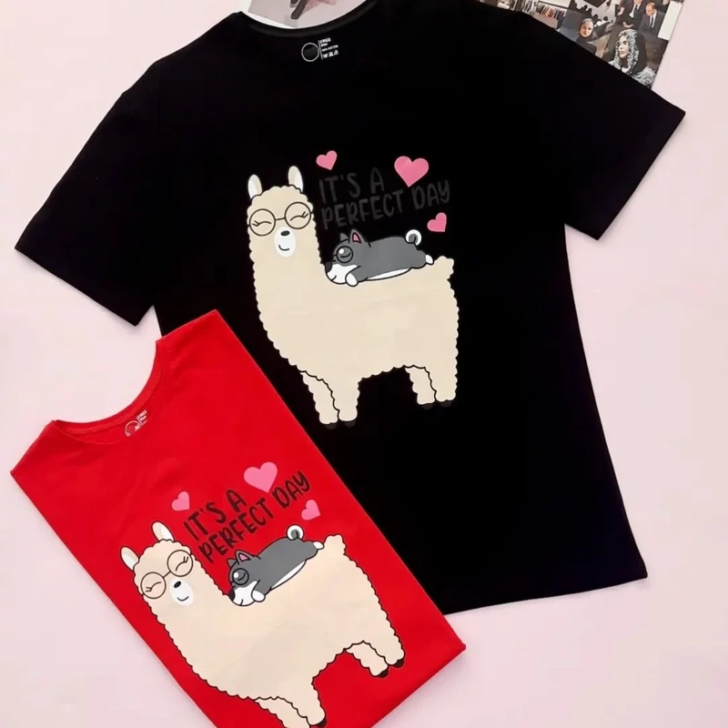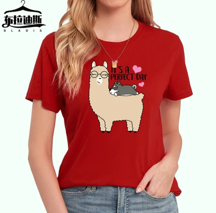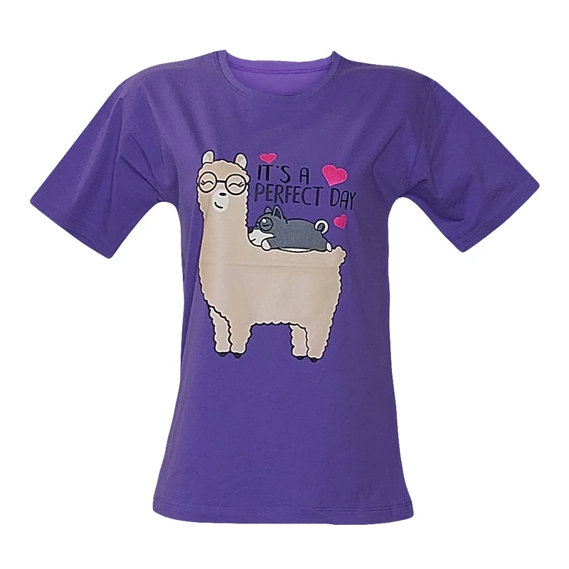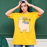تیشرت زنانه نخ پنبه طرح لاما