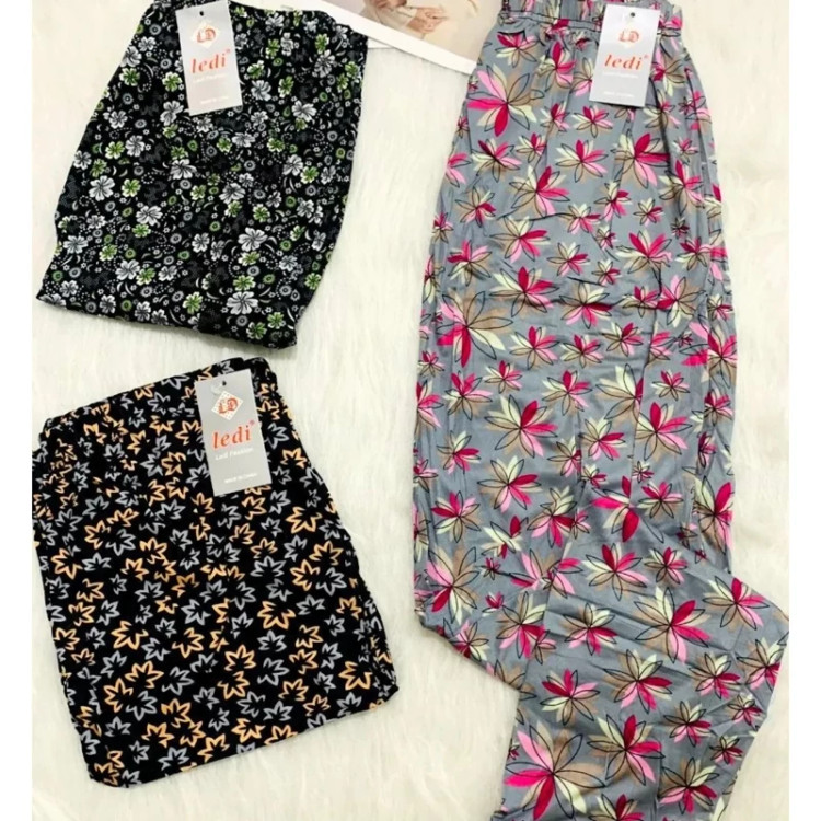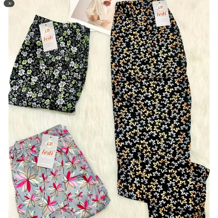 شلوار گیاهی زنانه گلدار مارک لیدی جنس پنبه ای نرم و لطیف کیفیت عالی در طرح های متنوع و جذاب قابلیت کشسانی زیاد فری سایز مناسب 36تا 50