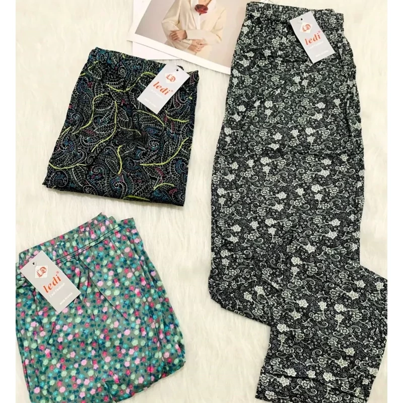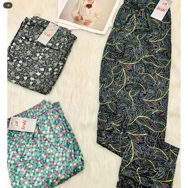 شلوار گیاهی زنانه گلدار مارک لیدی جنس پنبه ای نرم و لطیف کیفیت عالی در طرح های متنوع و جذاب قابلیت کشسانی زیاد فری سایز مناسب 36تا 50
