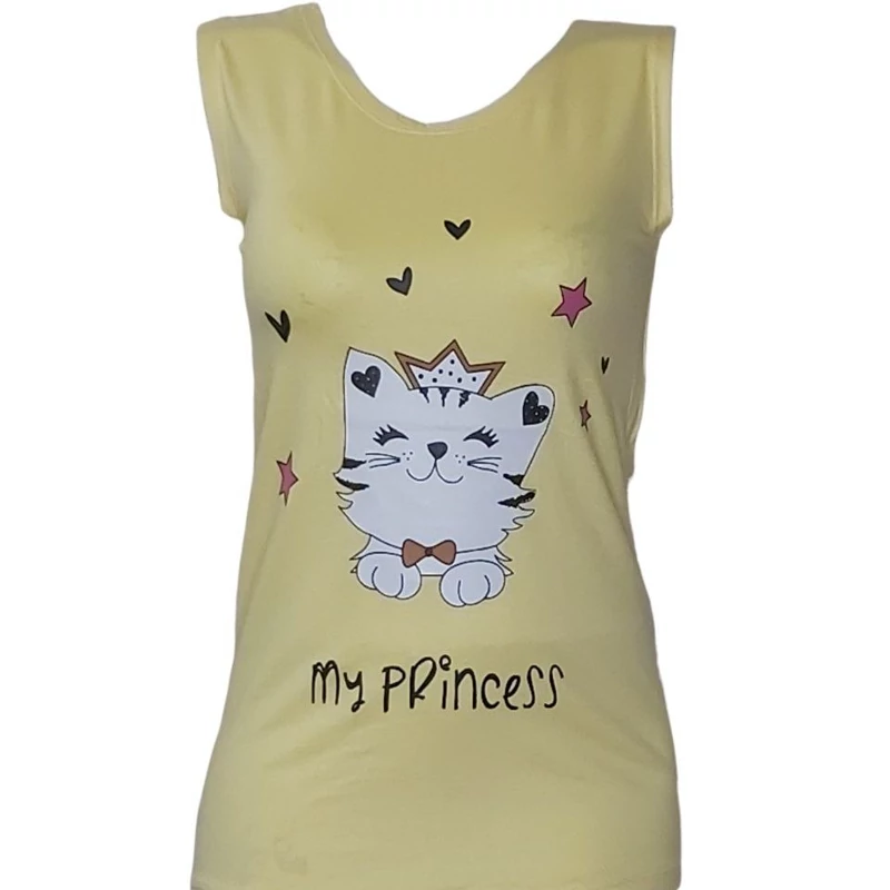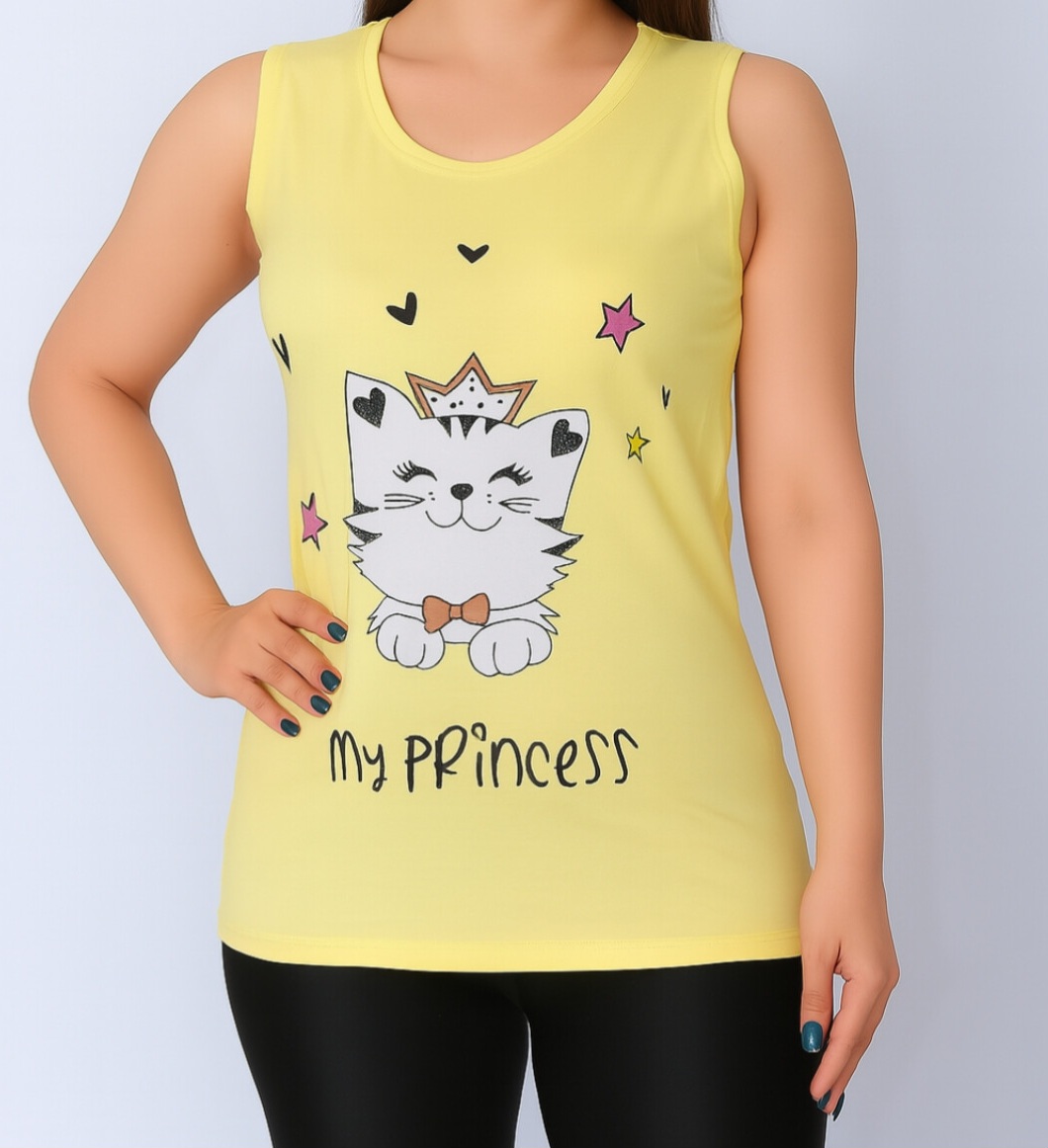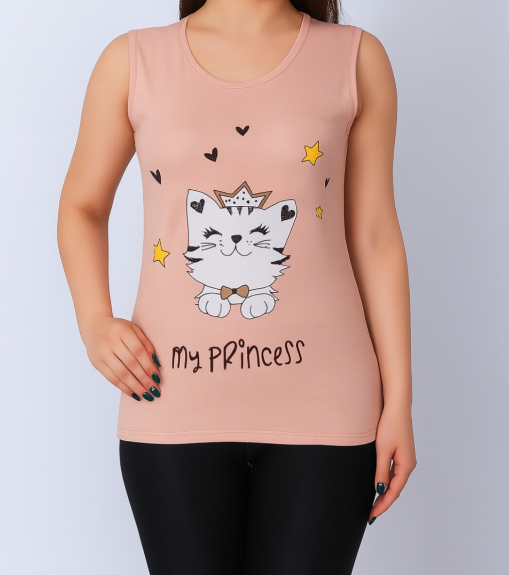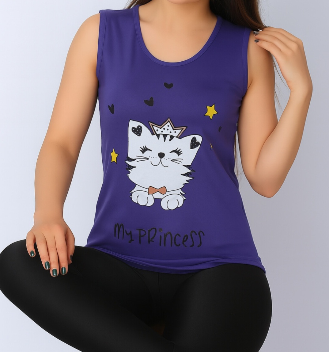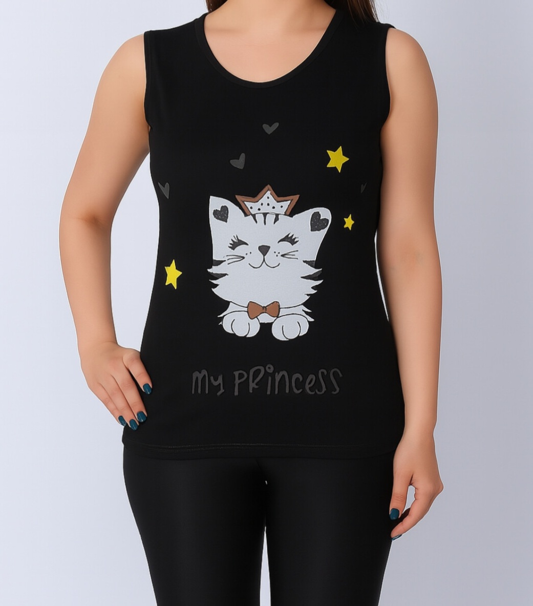 تاپ زنانه ویسکوز طرح گربه