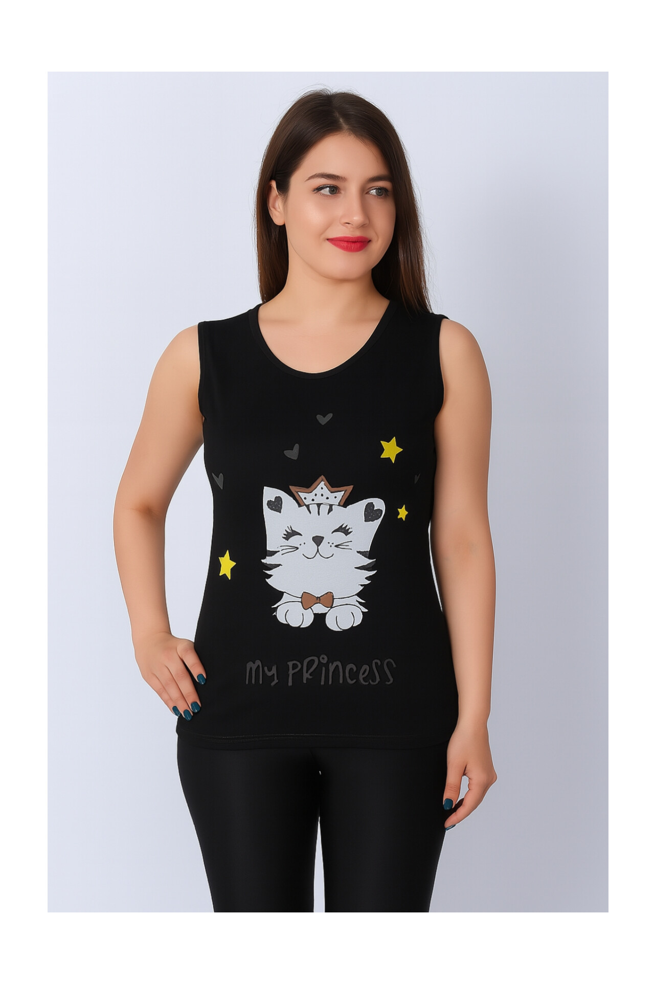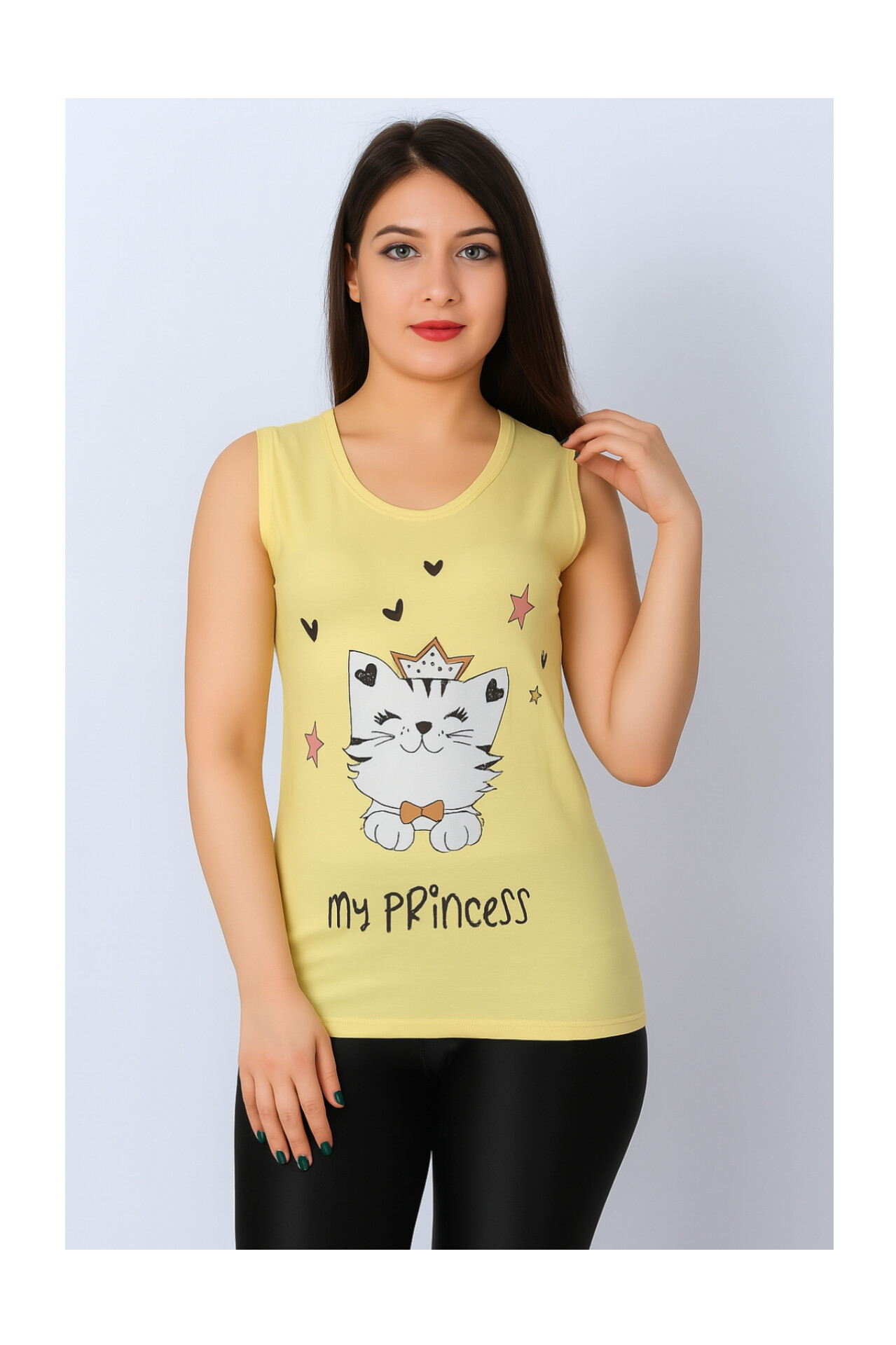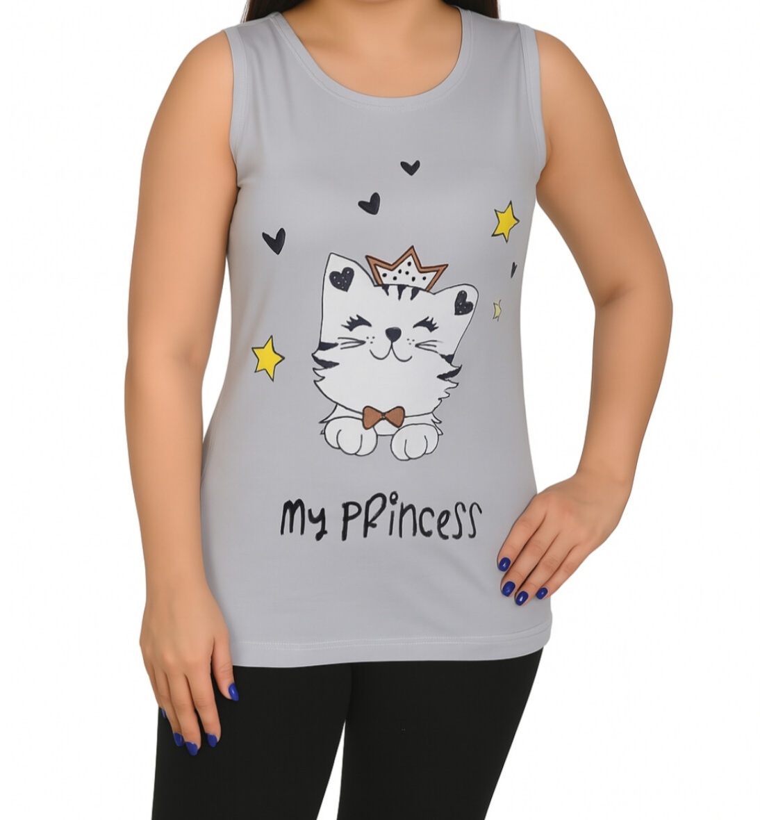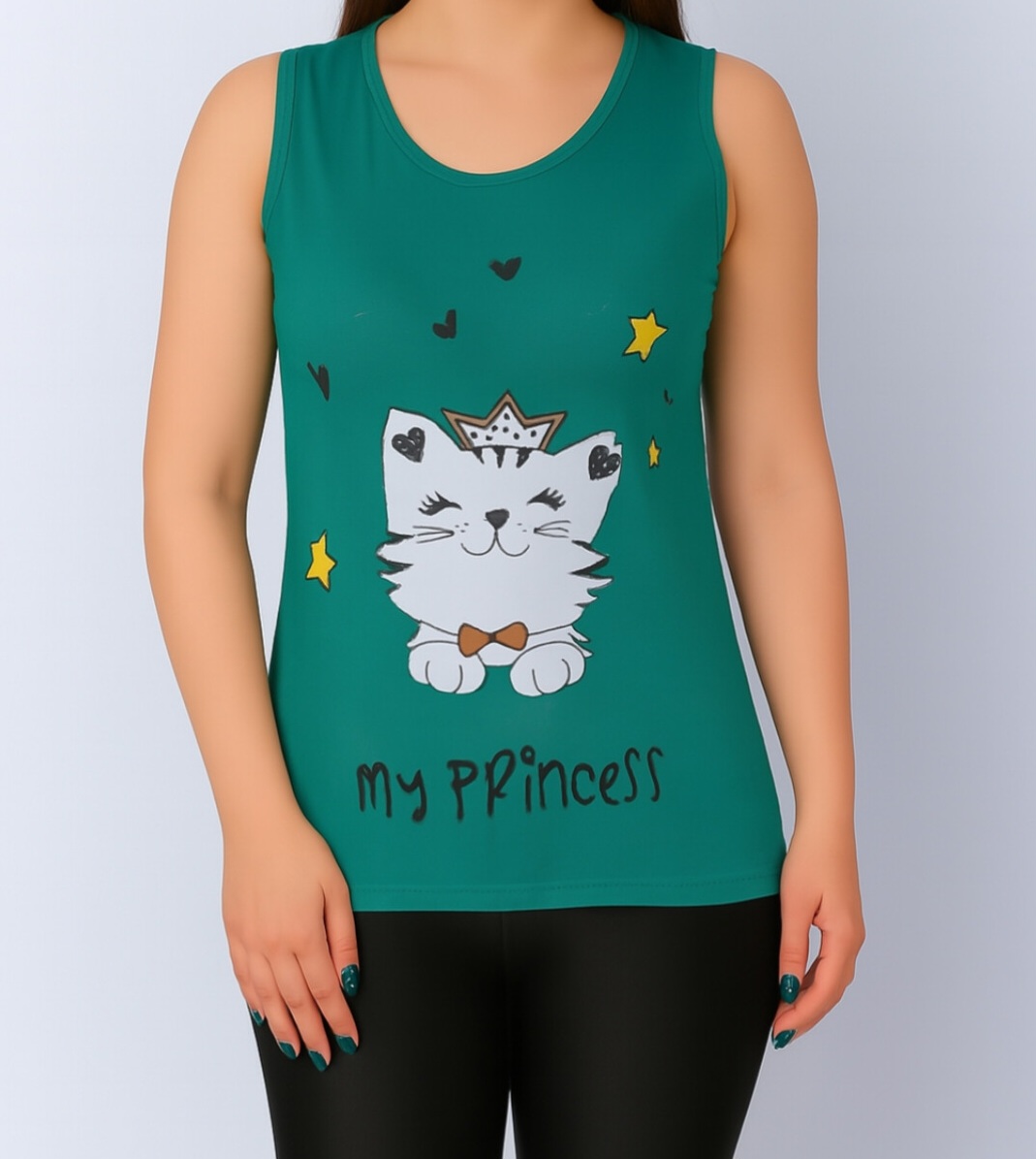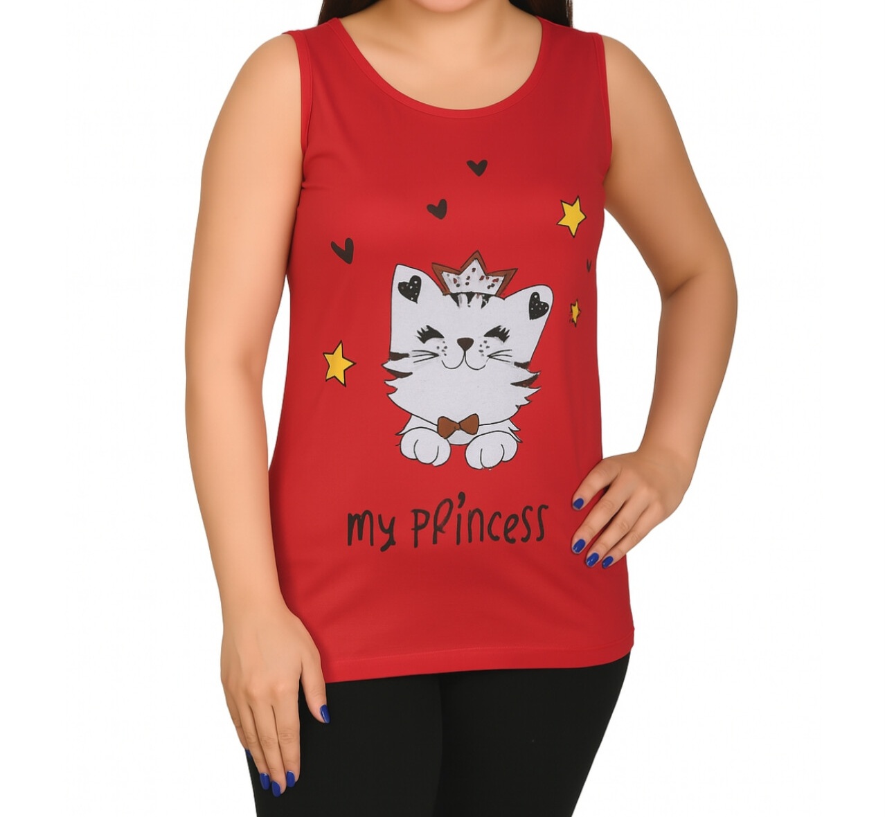 تاپ زنانه ویسکوز طرح گربه