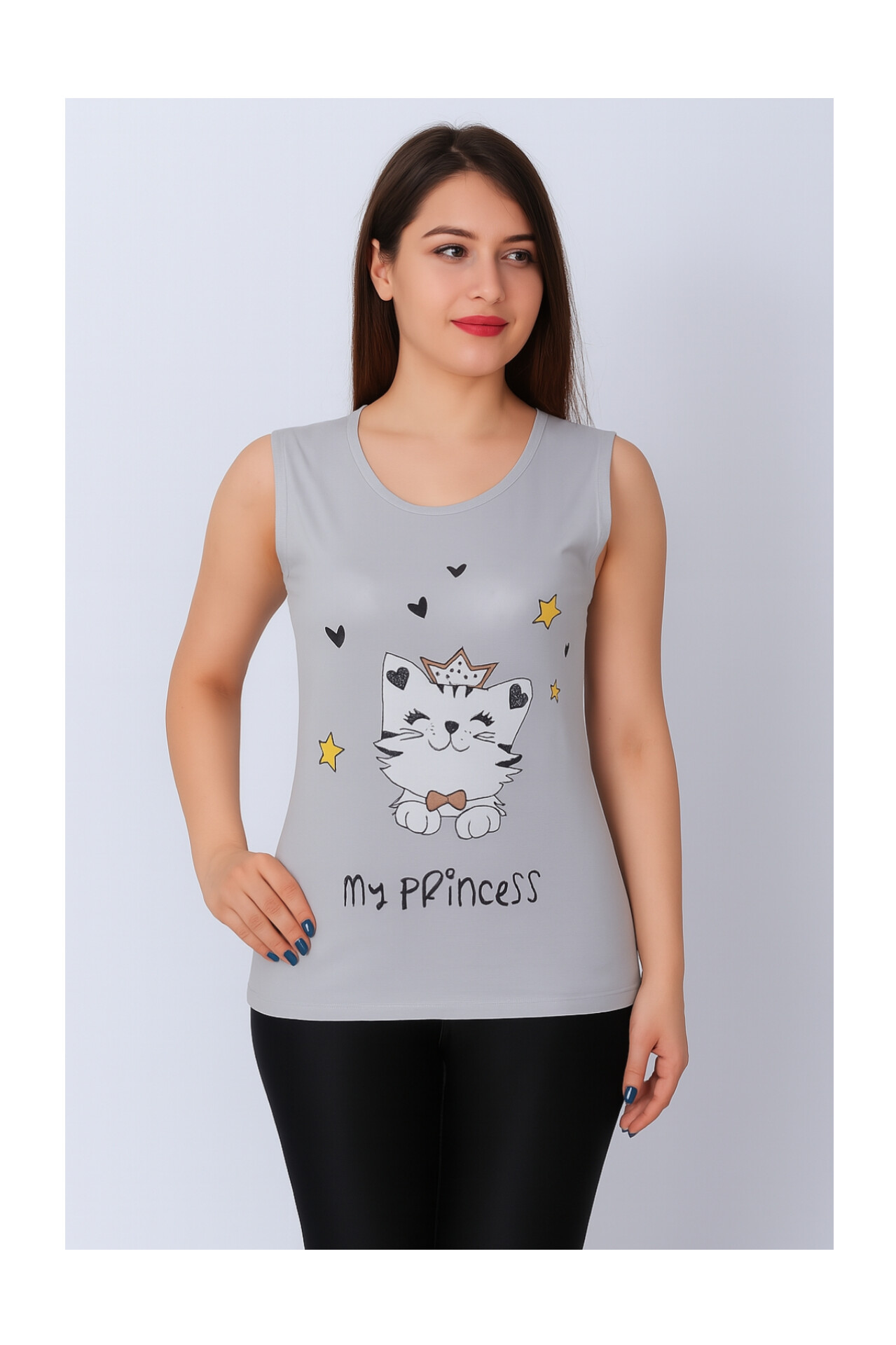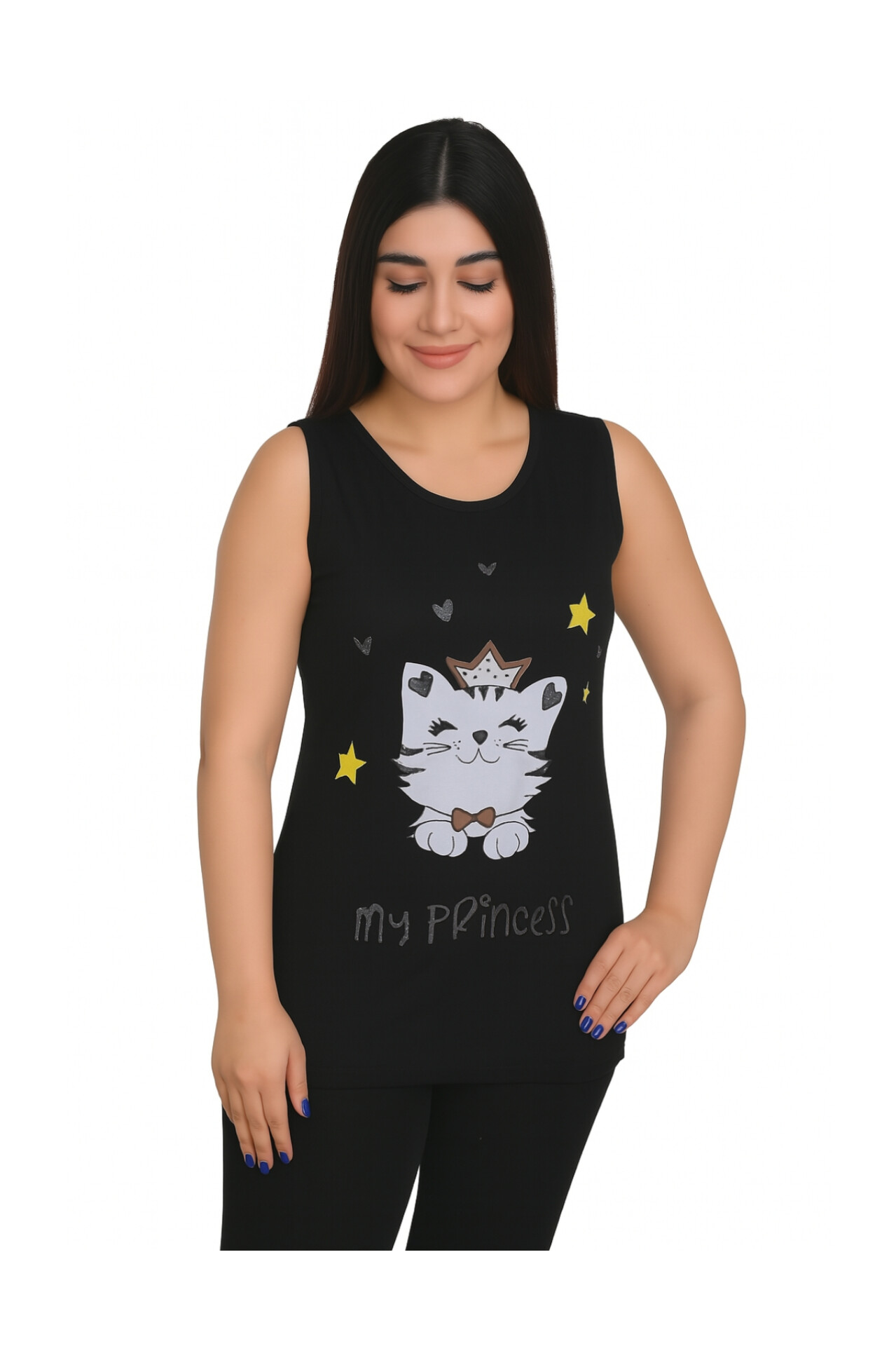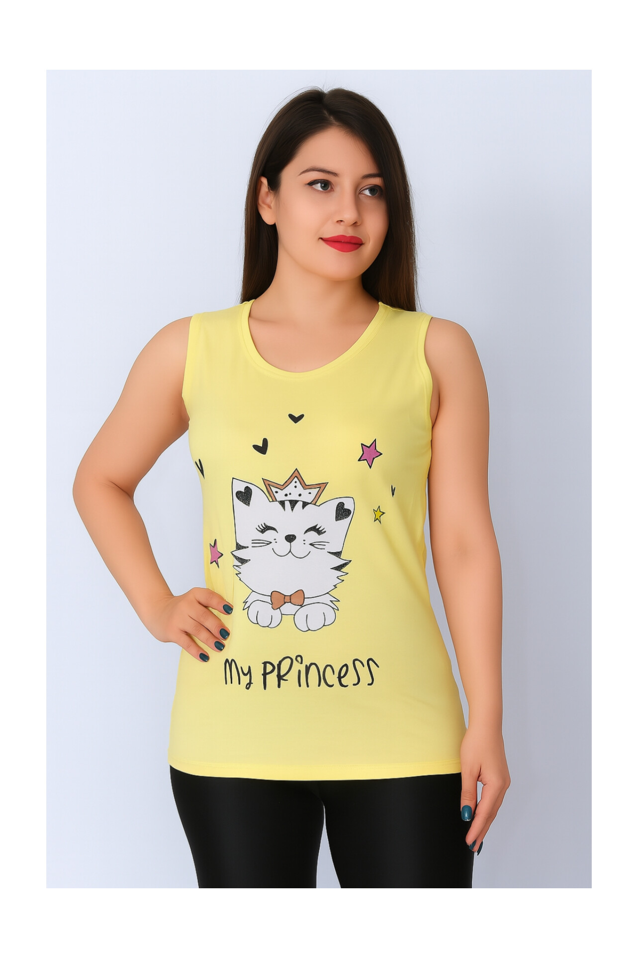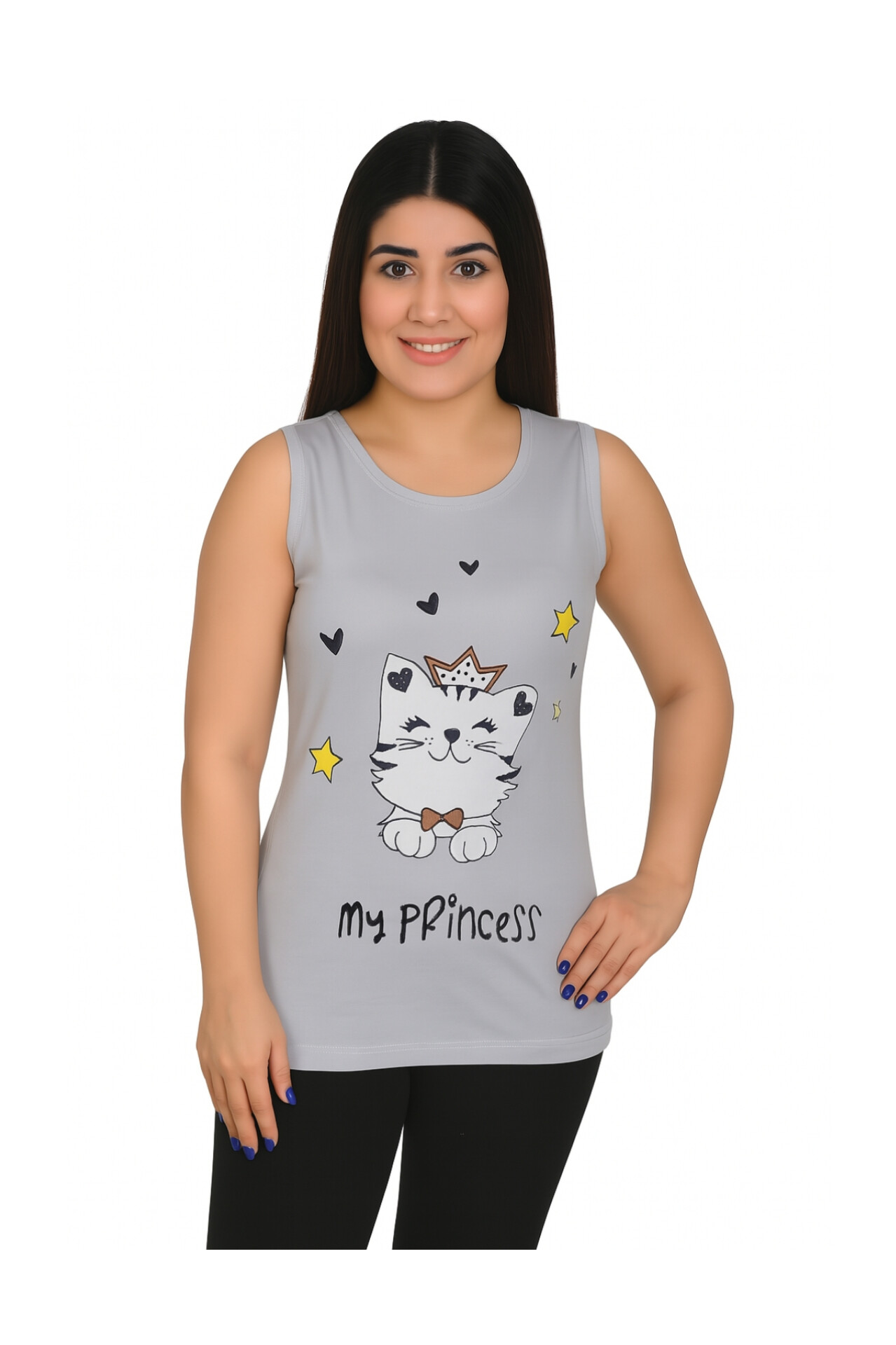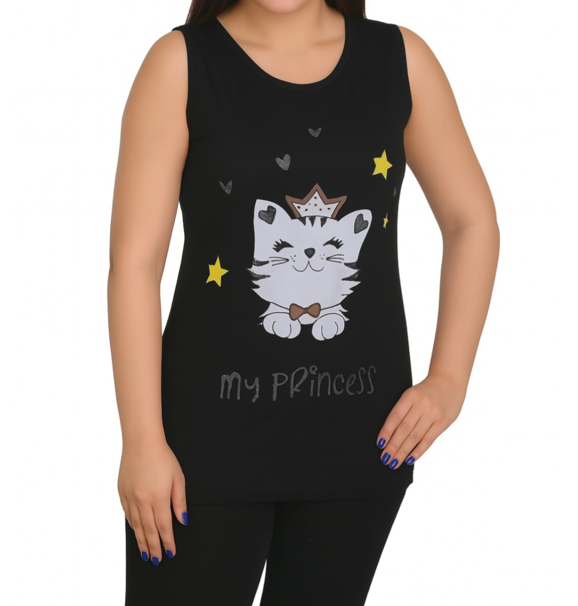 تاپ زنانه ویسکوز طرح گربه