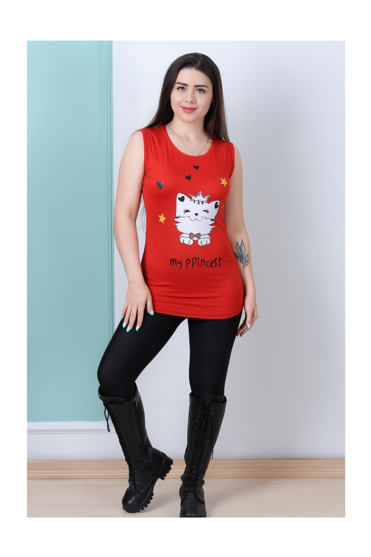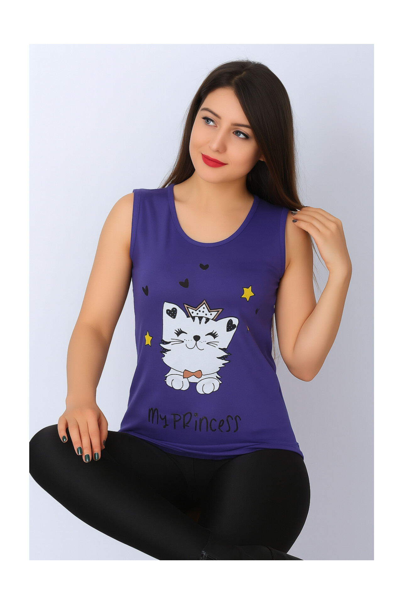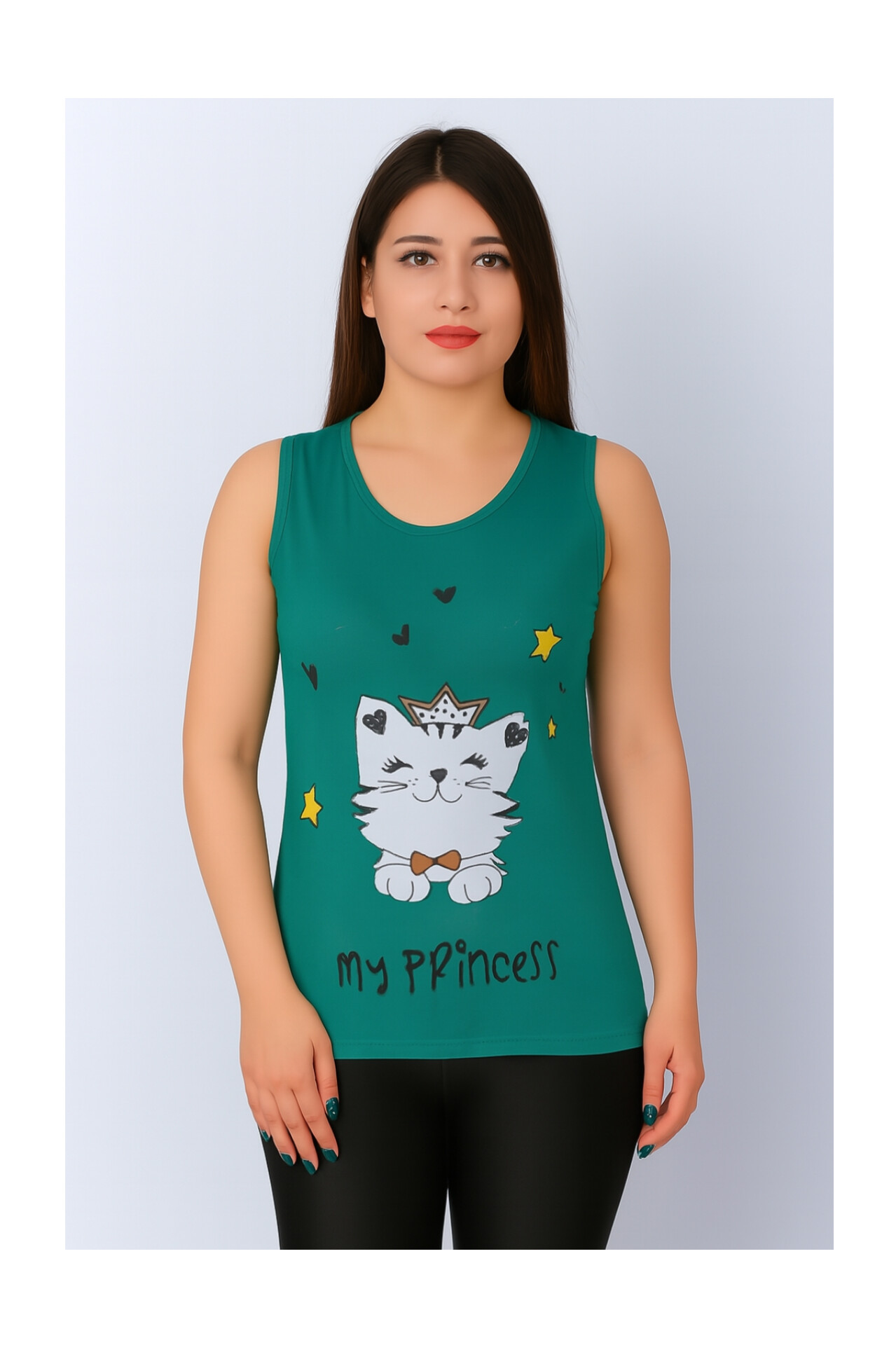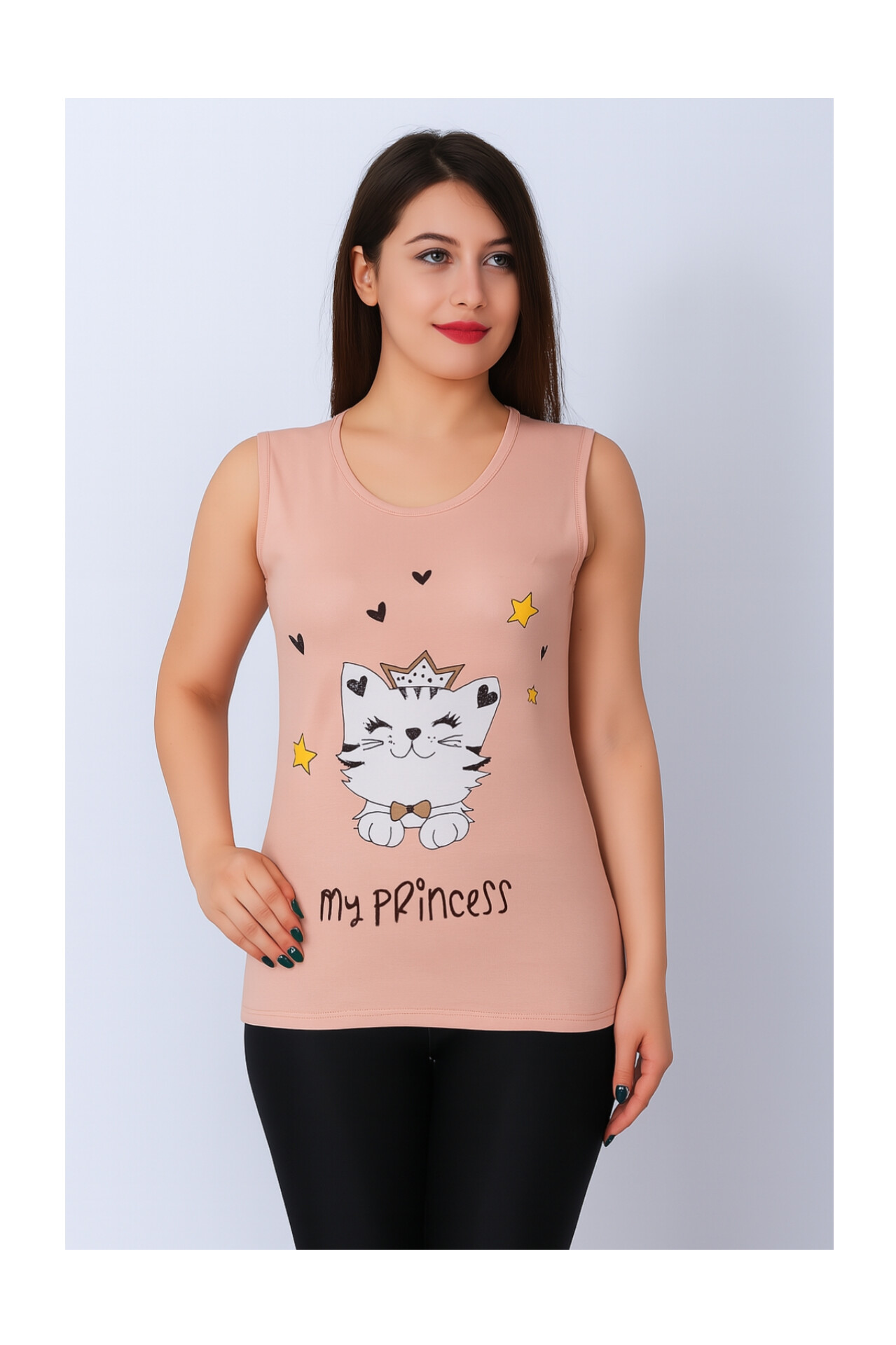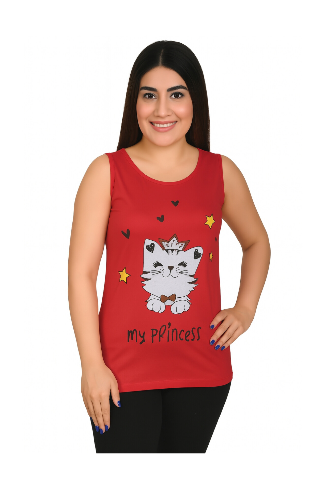 تاپ زنانه ویسکوز طرح گربه