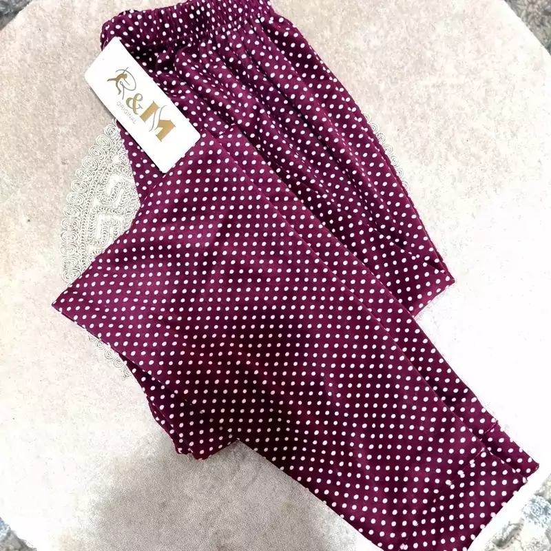 شلوار زنانه مخمل خال خالی وارداتی جنس مخمل درجه یک کیفیت عالی تن پوش گرم و راحت فری سایز مناسب 36تا 50 کشسانی دارد