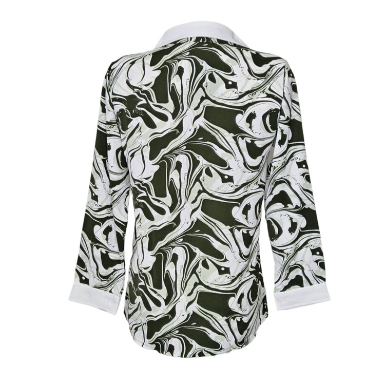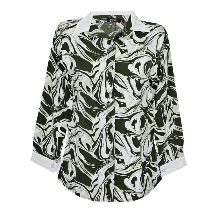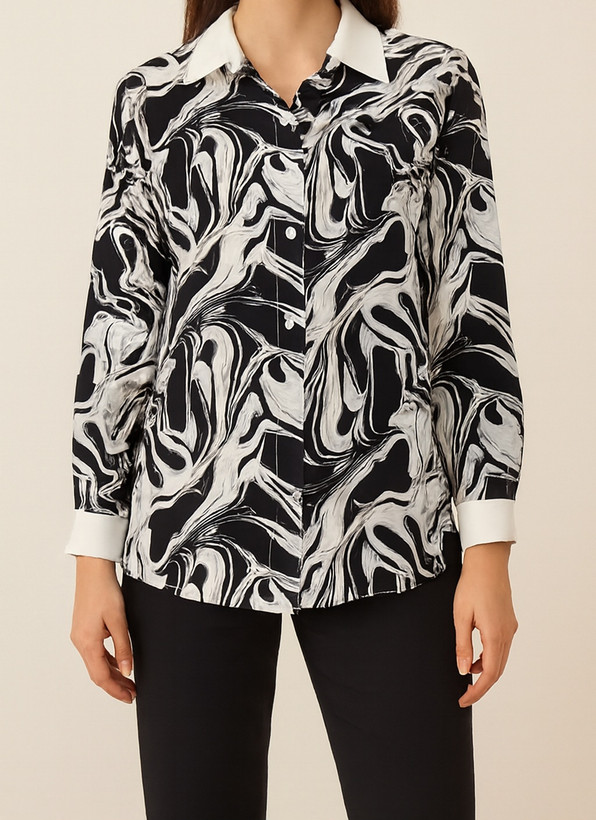 شومیز زنانه طرح دار الیزه جنس پارچه حریر کرپ الیزه تن پوش شیک و زیبا فوق العاده خنک و راحت سایز بندی دارد رنگبندی آبی و مشکی و سبز