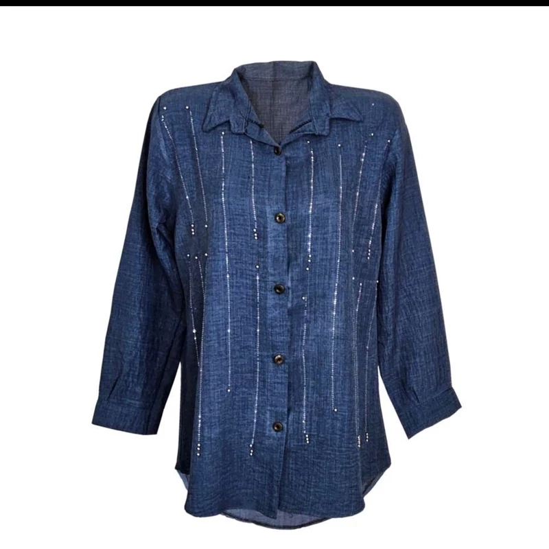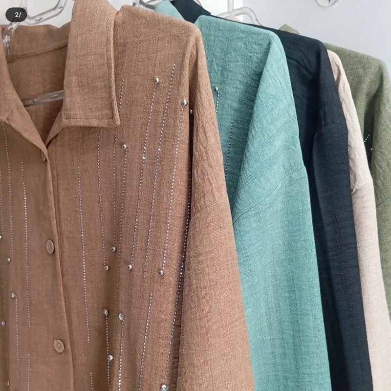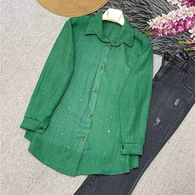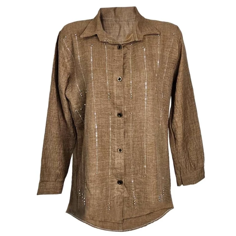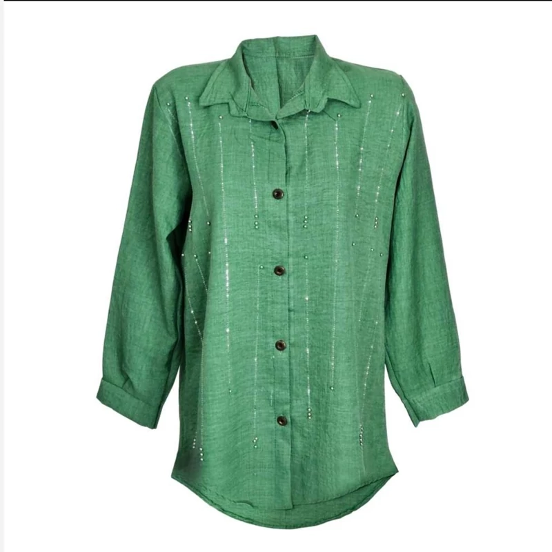 تونیک مانتویی زنانه نگین دار جنس لینن کیفیت عالی خنک و راحت تن پوش شیک و زیبا فری سایز مناسب 36تا 48 رنگبندی. آبی نفتی. نارنجی. سبز. نسکافه ای