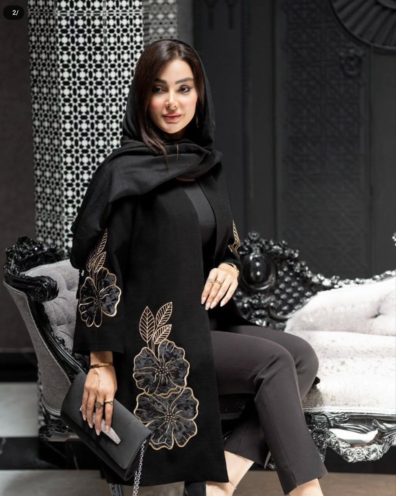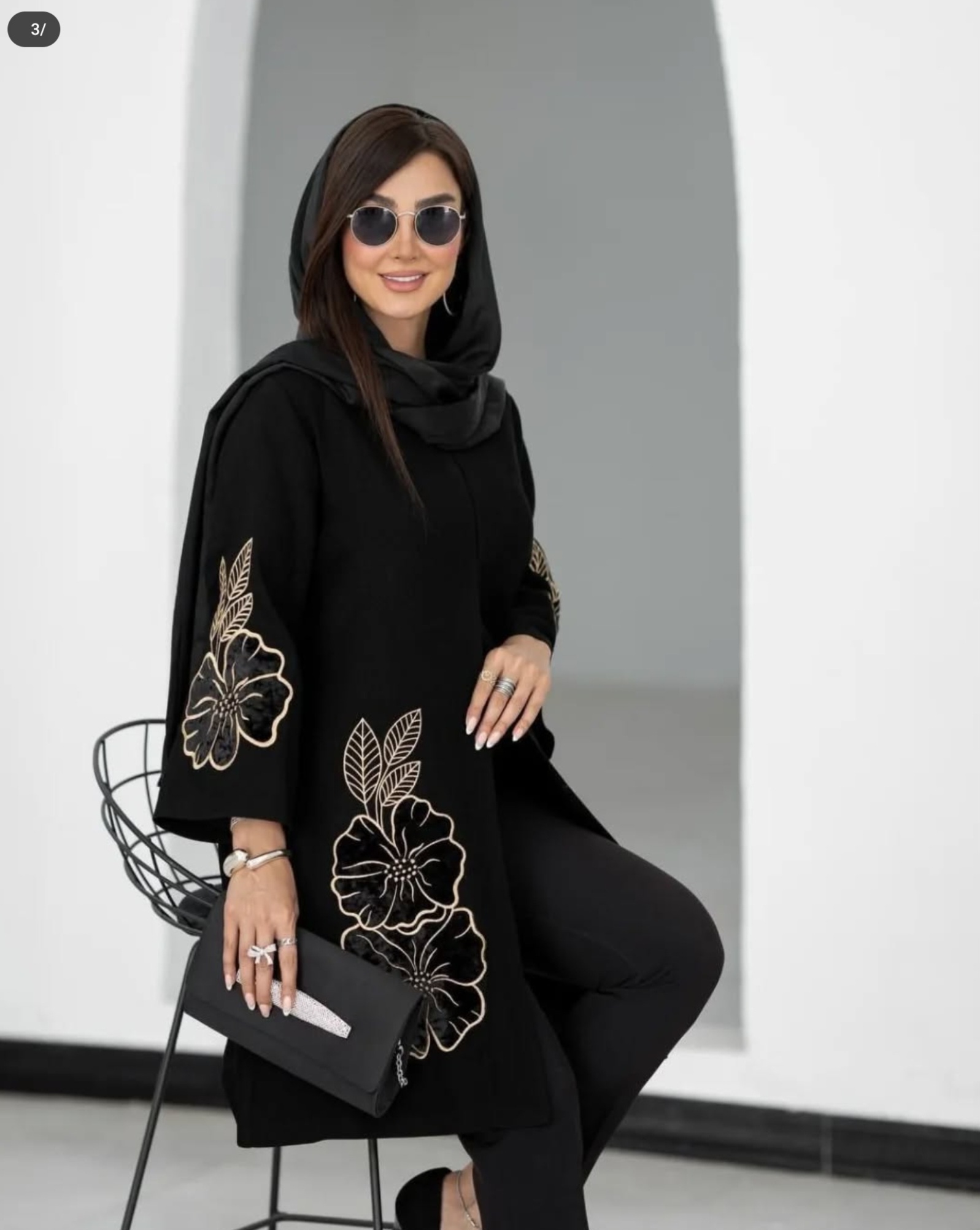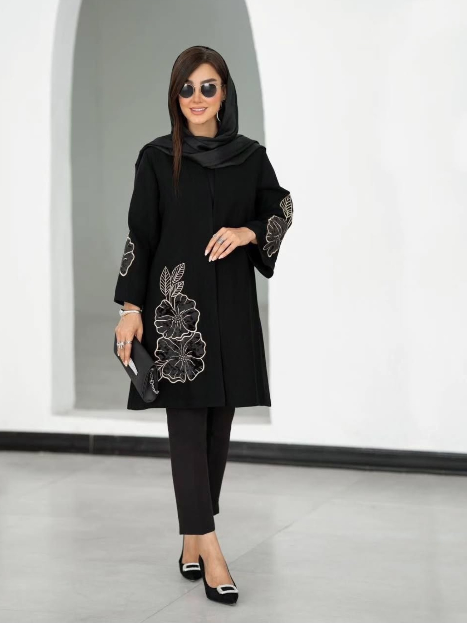 مانتو کتی زنانه مجلسی طرح گل جنس کرپ کیفیت عالی طرح گل گلدوزی شده تن پوش فوق العاده شیک و زیبا سایز بندی دارد. 1.2.3