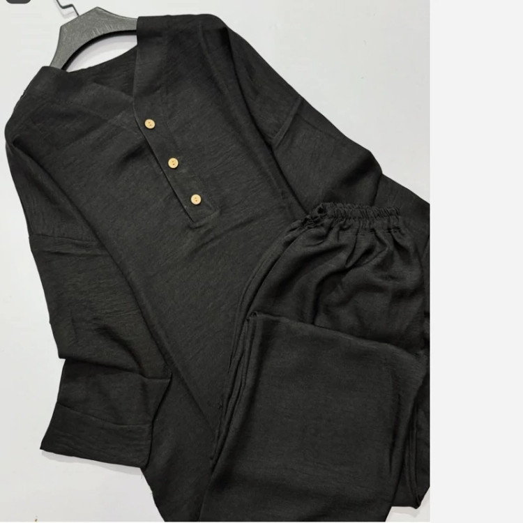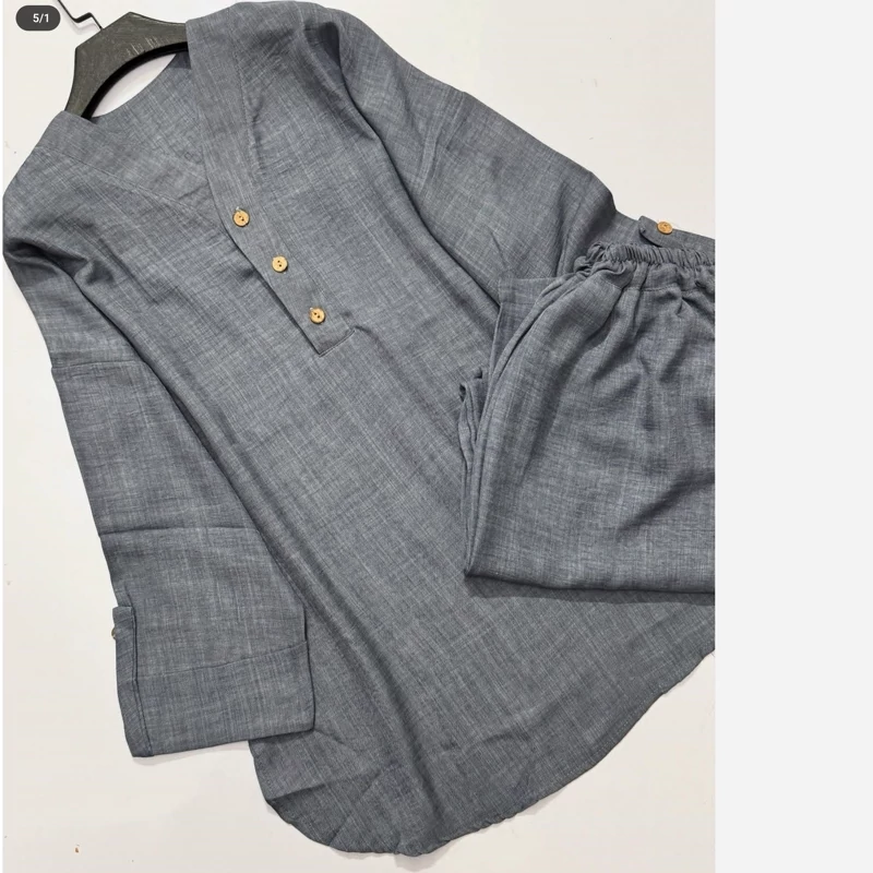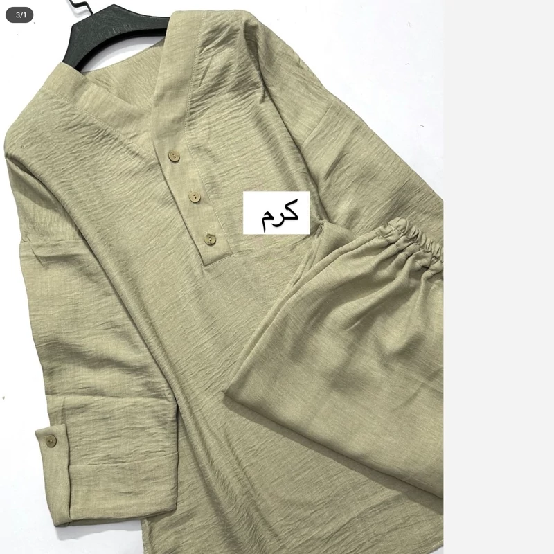 ست مانتو و شلوار زنانه جلو بسته جنس شانتون کیفیت درجه یک فوق العاده خنک و راحت تن پوش شیک و زیبا سایز بندی دارد
