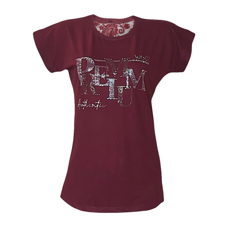 تیشرت زنانه ویسکوز نگین دار پشت گیپوری