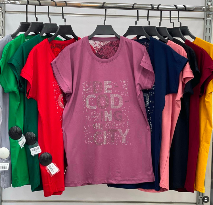 تیشرت زنانه آستين کوتاه ویسکوز نگین دار جنس ویکسوز کیفیت عالی قسمت پشت لباس گیپور کار شده تن پوش شیک و زیبا