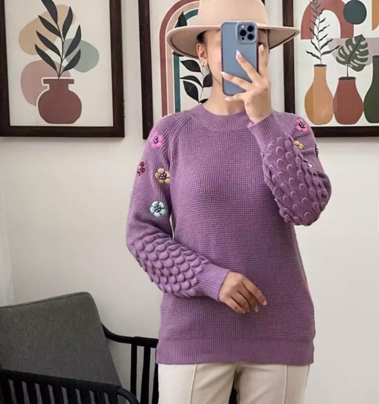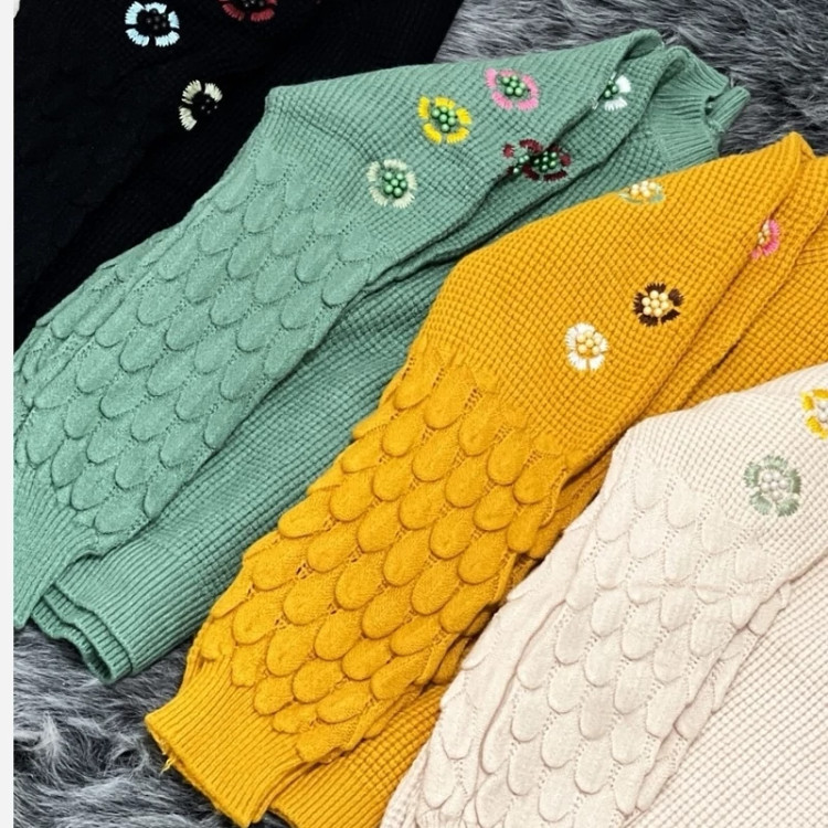 بلوز بافت زنانه گلدوزی شده وارداتی جنس بافت فوق العاده عالی تن پوش شیک و زیبا مدل خاص قسمت آستین ها گلدوزی شده و مروارید کار شده کیفیت بافت ظریف و گرم
