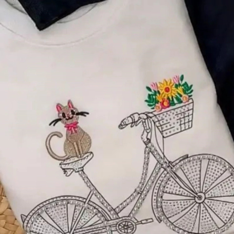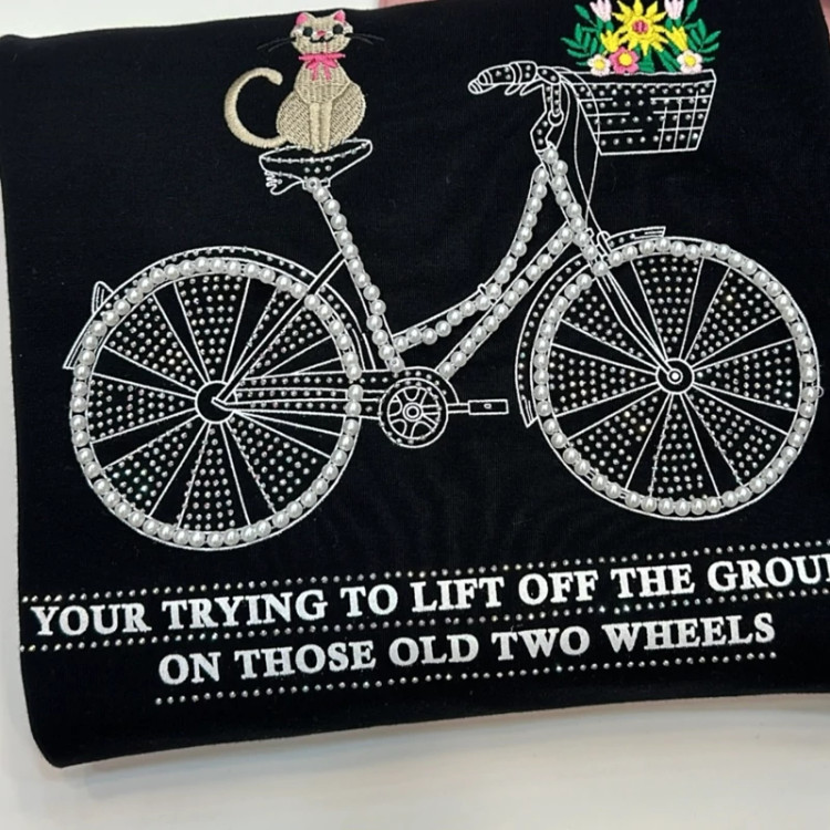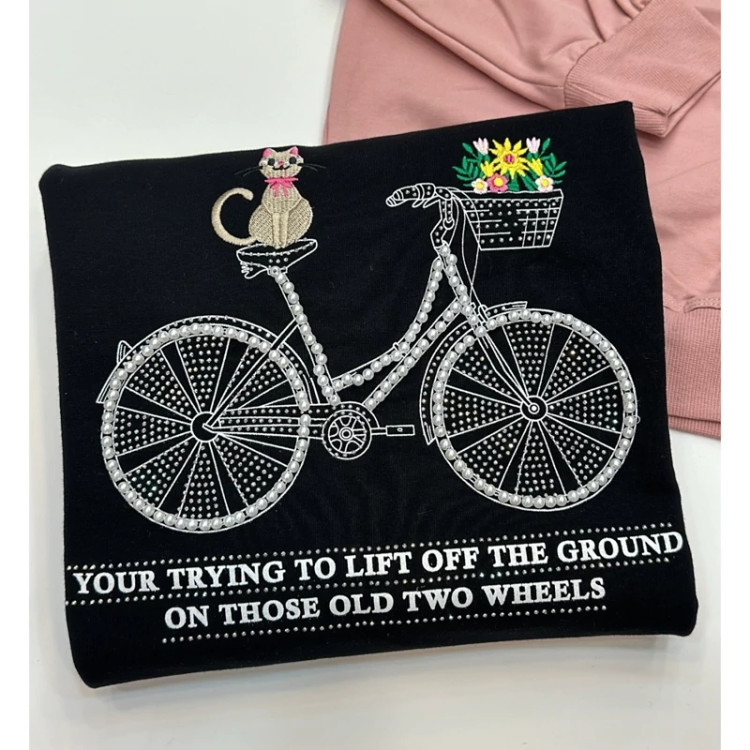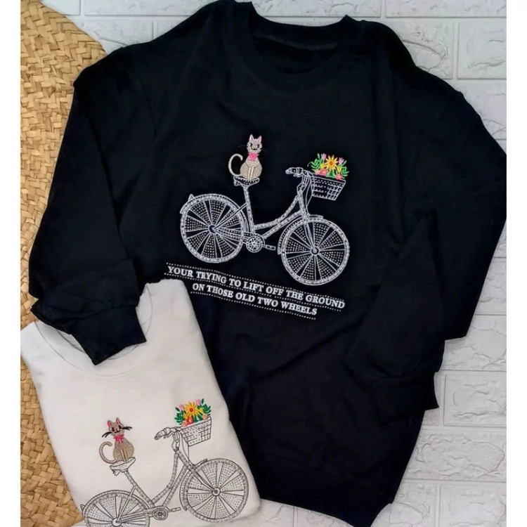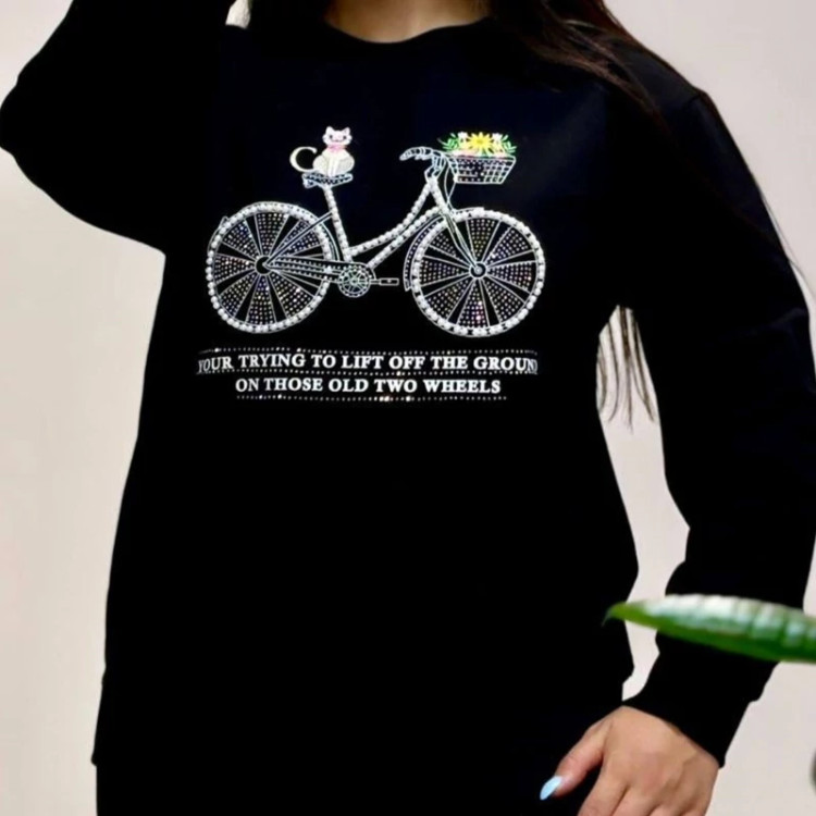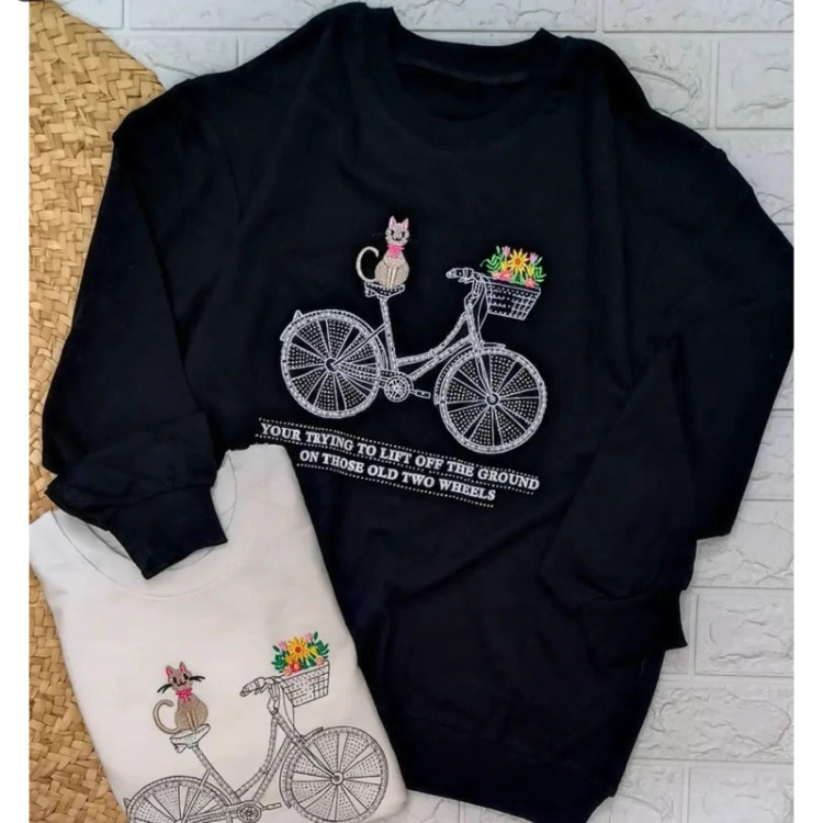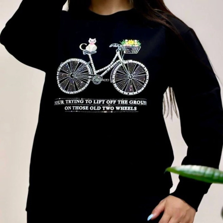 دورس زنانه طرح دوچرخه جنس دورس پنبه قسمت جلو کار مرواريد پرس شده است و گلدوزی شده کیفیت عالی و گرم بالا فری سایز