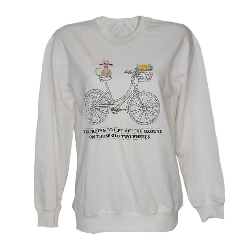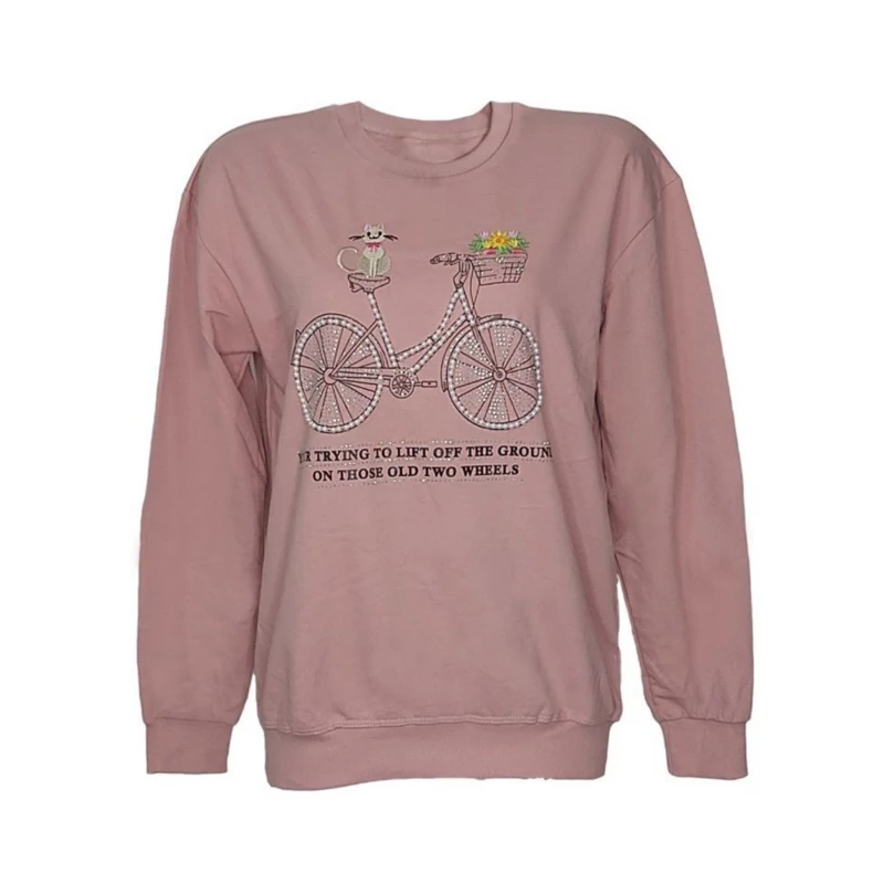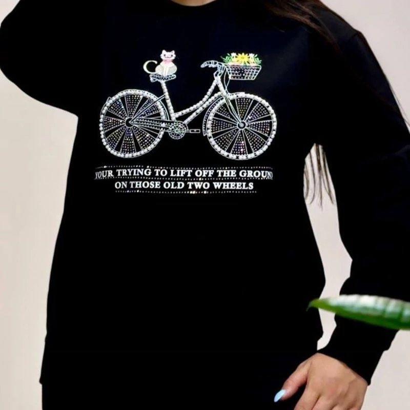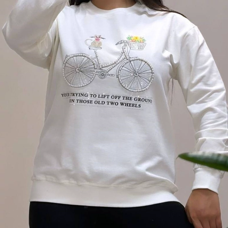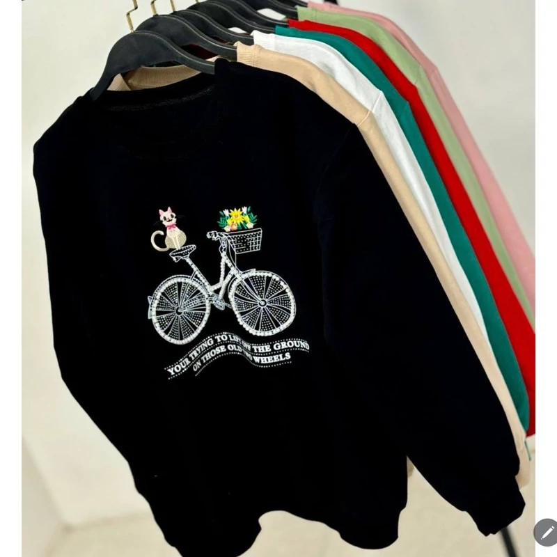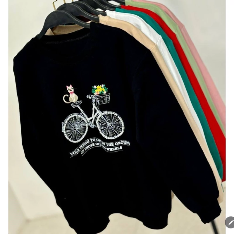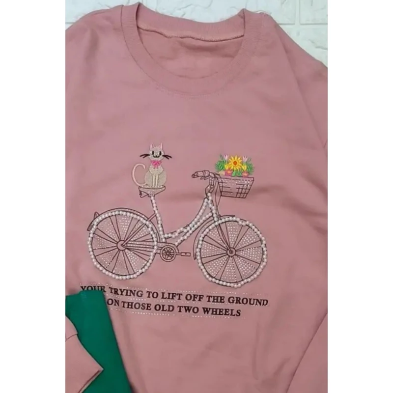دورس زنانه طرح دوچرخه جنس دورس پنبه قسمت جلو کار مرواريد پرس شده است و گلدوزی شده کیفیت عالی و گرم بالا فری سایز