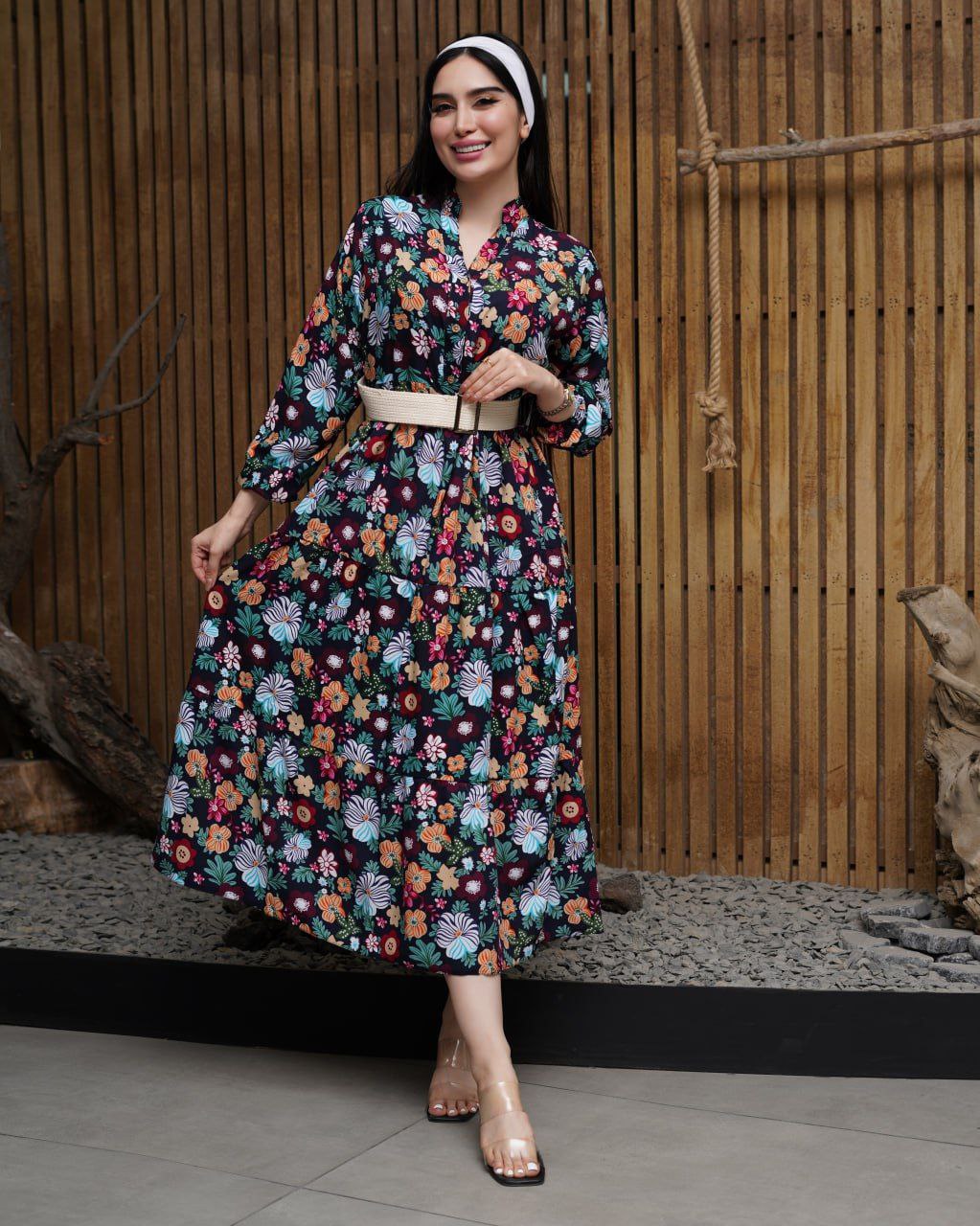 پیراهن نخی زنانه گلدار