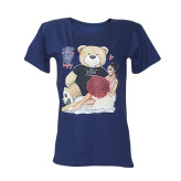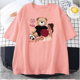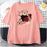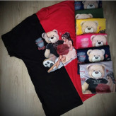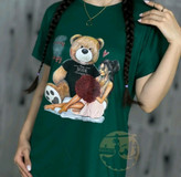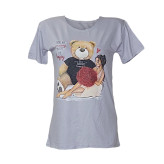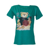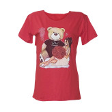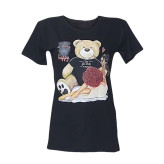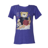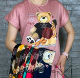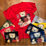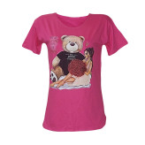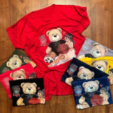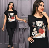 تیشرت زنانه آستين کوتاه نگین دار طرح خرس جنس ویکسوز نگین دار کیفیت عالی فری سایز 36 تا 48 در رنگ های مختلف و متنوع دور سینه بدون کشسانی 98 سانت. طول 68 سانت کشسانی دارد