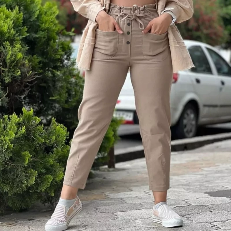 شلوار مام استایل کتان کش زنانه جنس کتان کش درجه یک کیفیت عالی تن پوش شیک و زیبا قد شلوار 90 سایز بندی دارد