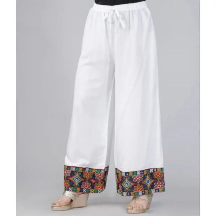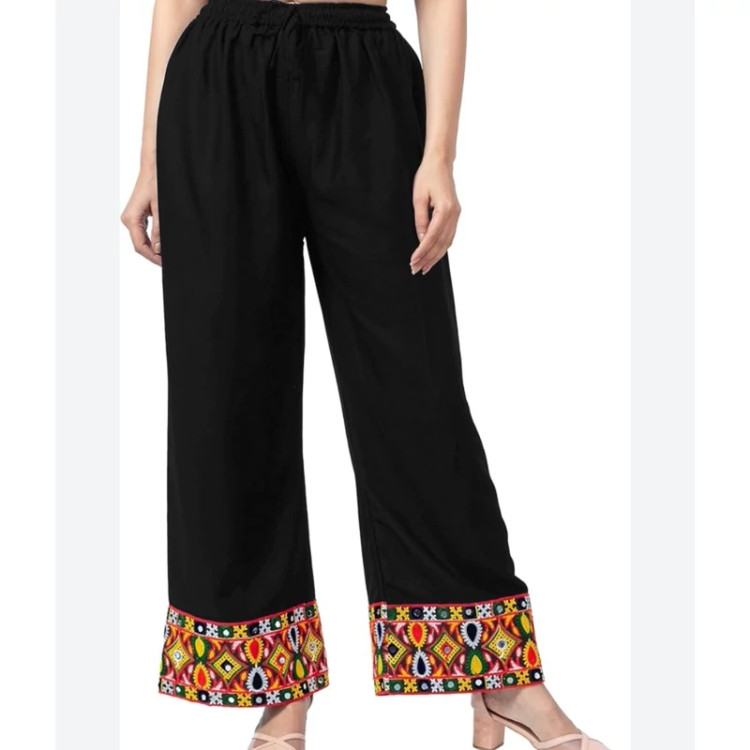 شلوار نخی زنانه وارداتی سنتی جنس نخ خالص بدون آبرفت درجه یک طرح هندی سوزن دوزی و آینه کاری فوق العاده شیک و خاص فری سایز. 36تا42 دور باسن 106 سانت. دور ران 56.طول 95 سانت