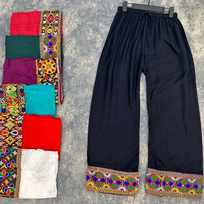 شلوار نخی زنانه وارداتی سنتی جنس نخ خالص بدون آبرفت درجه یک طرح هندی سوزن دوزی و آینه کاری فوق العاده شیک و خاص فری سایز. 36تا42 دور باسن 106 سانت. دور ران 56.طول 95 سانت