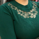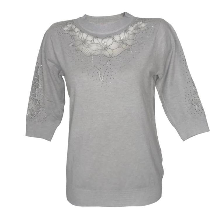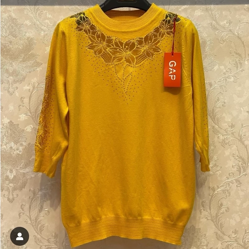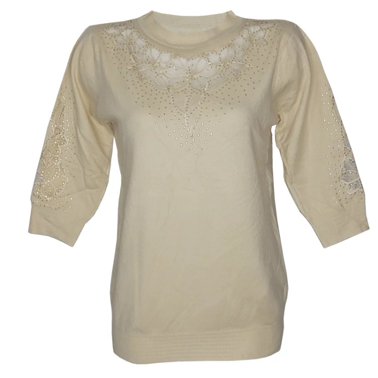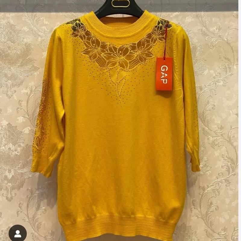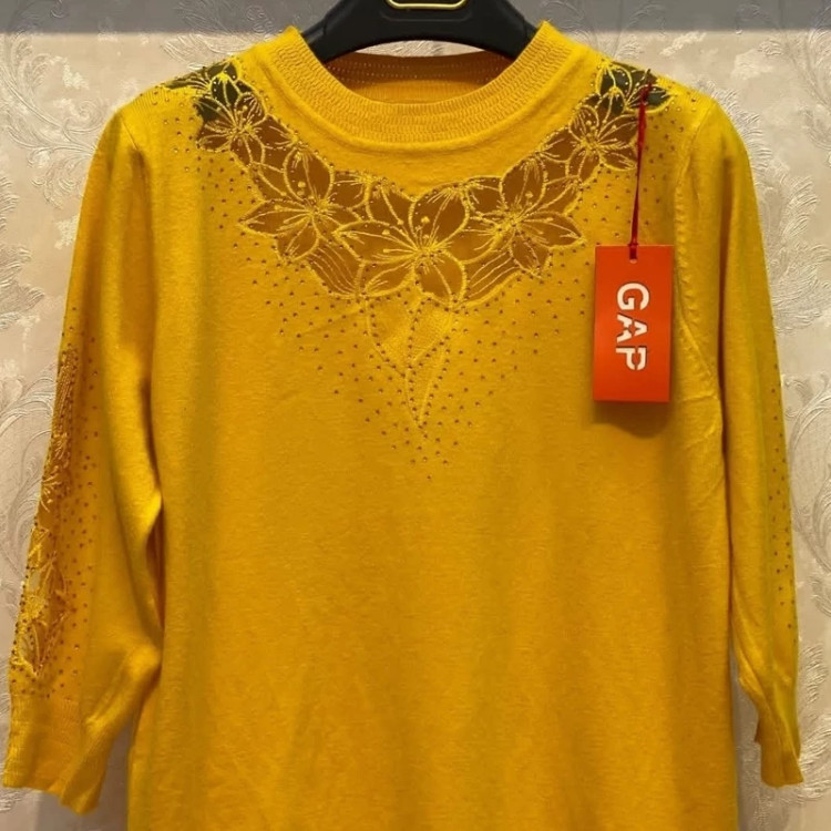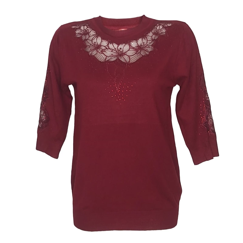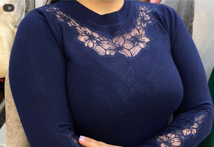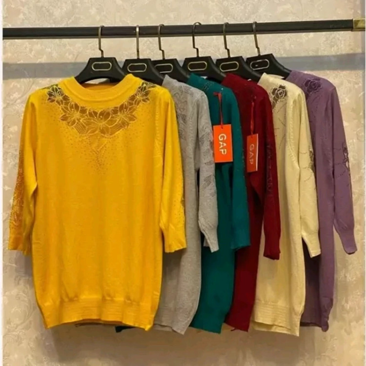 بلوز بافت آستین سه ربع زنانه گپ ترک مجلسی و کار شده قسمت جلوی و آستین های بافت تور و نگین کار شده که تن پوش فوق العاده شیک و زیبایی دارد جنس و کیفیت عالی ریز بافت گرم بالا مناسب استفاده مهمانی و روزمره در رنگ های مختلف فری سایز مناسب 36تا48