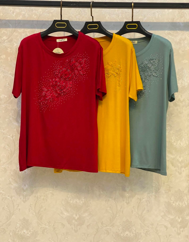 تیشرت زنانه گیپوری برند هایوکس جنس ویسکوز کیفیت عالی تن پوش خنک و راحت فری سایز مناسب 36تا 50 کشسانی زیاد