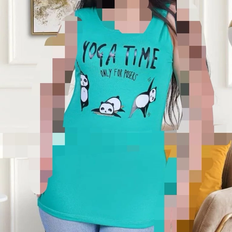 تاپ زنانه ویسکوز طرح پاندا کیفیت عالی تن پوش خنک و راحت فری سایز مناسب 36تا 46 کشسانی دارد
