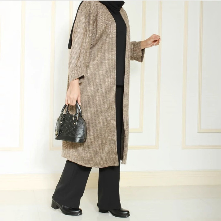 مانتو پاییزه زنانه بیسکویتی جنس موهر پشمی درجه یک تن پوش شیک و زیبا مناسب استفاده روزمره و مهمانی فری سایز مناسب 36تا 50